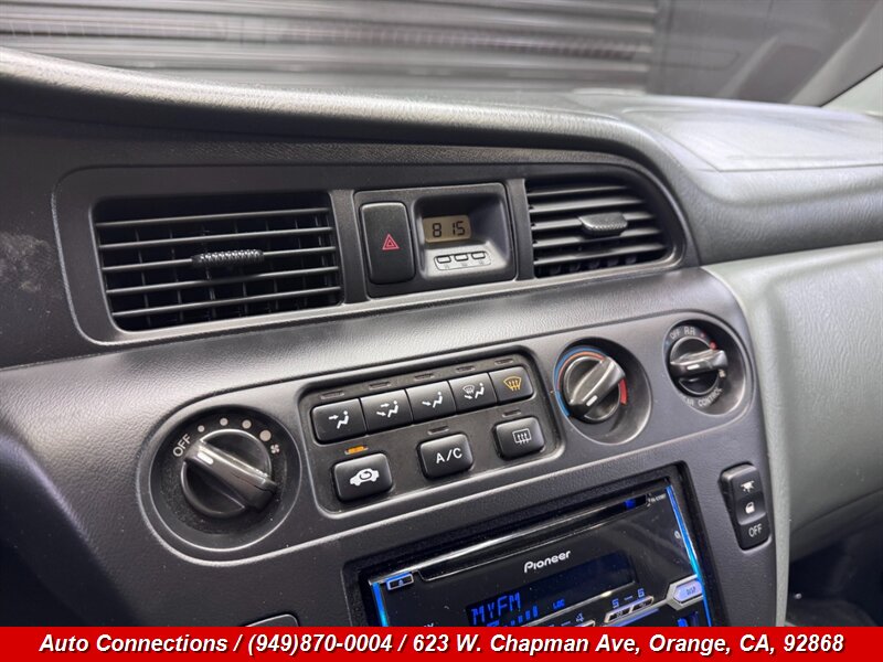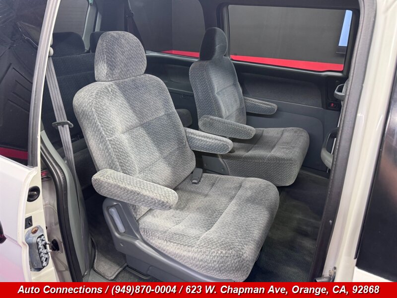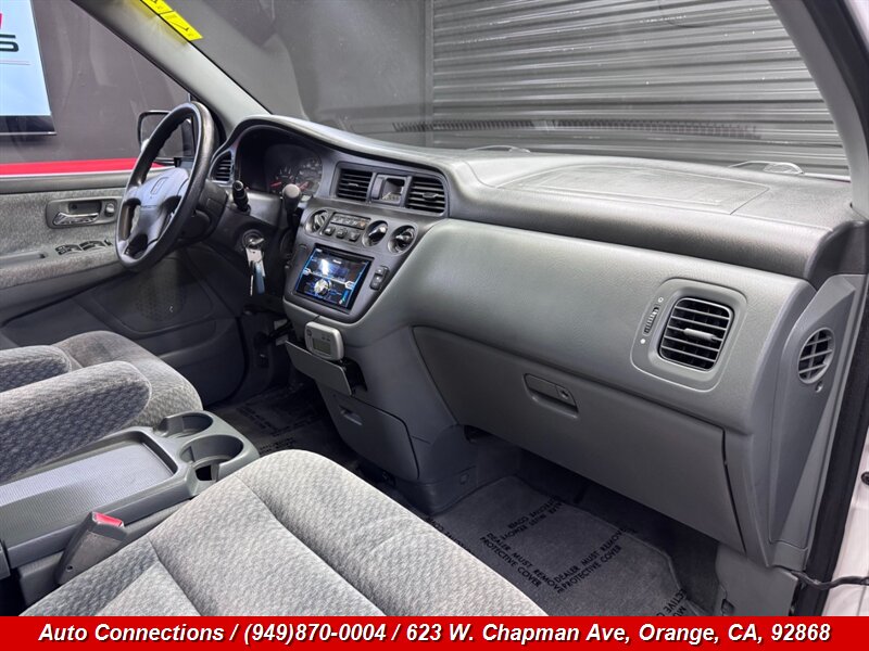 2000 Honda Odyssey LX — motor V6 atmosférico 3.0L (SOHC, 24 válvulas), transmisión automática y tracción delantera. Equipamiento de fábrica: aire acondicionado, elevalunas y seguros eléctricos, control de crucero, volante inclinable, tapicerÃa de tela con capacidad para hasta siete pasajeros y asientos de segunda y tercera fila plegables/deslizantes para mayor versatilidad, radio AM/FM, limpiaparabrisas intermitentes, desempañador trasero y espejos eléctricos. Seguridad estándar con bolsas de aire frontales y cinturones de seguridad de tres puntos. VehÃculo en excelente estado general, CARFAX limpio y kilometraje excepcionalmente bajo por debajo de 62,000 millas (promedio menos de 3,000 millas por año).