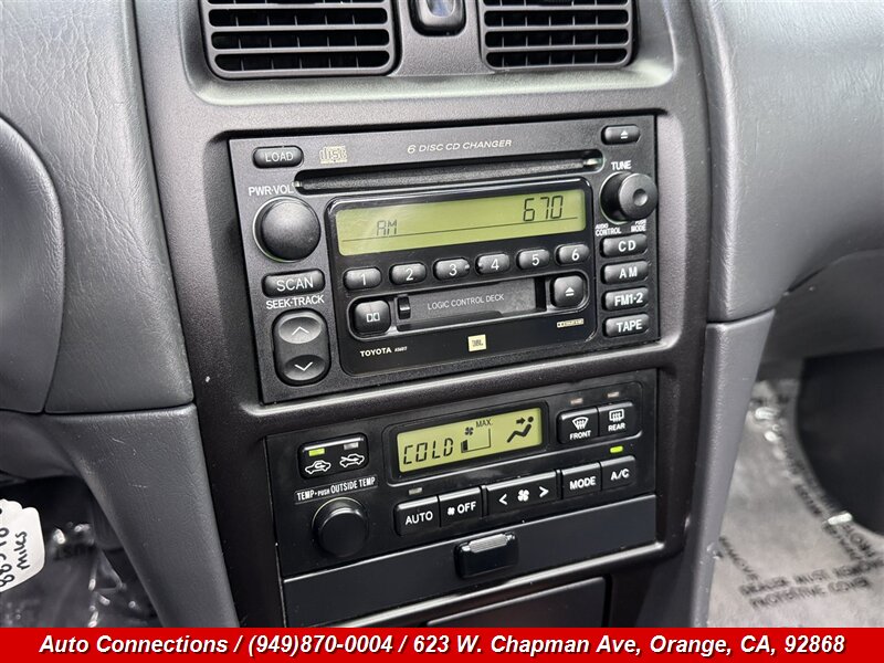 2002 Toyota Camry Solara SLE V6 — 3.0L naturally aspirated DOHC 24-valve V6 with smooth automatic transmission, exceptional mileage below 89,000 miles (averaging under 4,000 miles/year), excellent overall condition and a clean CARFAX. Factory-equipped features include alloy wheels, power windows/locks/mirrors, remote keyless entry, air conditioning, cruise control, tilt steering and a center console, power-adjustable driver’s seat and 60/40-split rear seat, AM/FM stereo with CD player, and practical cloth or leather-trim seating depending on original outfitting. Safety and driveline items from the factory include front-wheel drive, anti-lock brakes (ABS), dual front airbags, reinforced side-impact protection and child-seat anchors; front seat-mounted side airbags and traction control were commonly offered on V6 models.