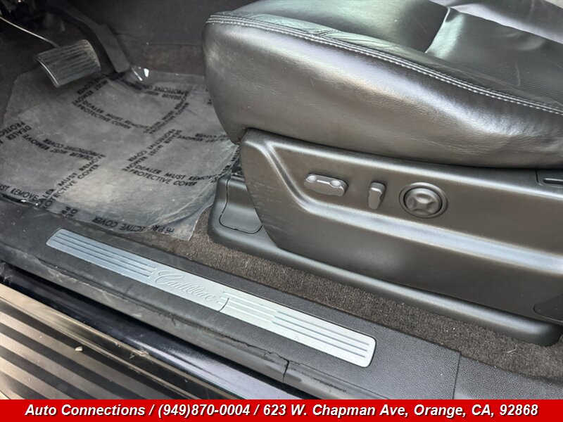 2009 Cadillac Escalade — Impulsado por un V8 FlexFuel 6.2L que entrega 403 hp y 417 lb-ft, asociado a una transmisión automática de 6 velocidades. El equipo de fábrica incluye asientos tapizados en cuero con asientos delanteros calefactados y memoria para el conductor, asientos traseros con ajuste eléctrico, climatizador automático de tres zonas con controles traseros, sistema de audio premium Bose con CD/entrada auxiliar, controles de audio y control de crucero en el volante, portón trasero eléctrico, detalles exteriores cromados, estribos y llantas de aleación. Entre las características de seguridad y comodidad se cuentan ABS, control de tracción y estabilidad (StabiliTrak), airbags laterales frontales y cortina integral, monitorización de presión de neumáticos, comunicaciones OnStar y compatibilidad con radio satelital/navegación, además de sensores de estacionamiento traseros. Este vehículo se encuentra en excelente estado general, cuenta con CARFAX limpio y kilometraje bajo, por debajo de 94,000 millas (promediando menos de 6,000 millas por año).