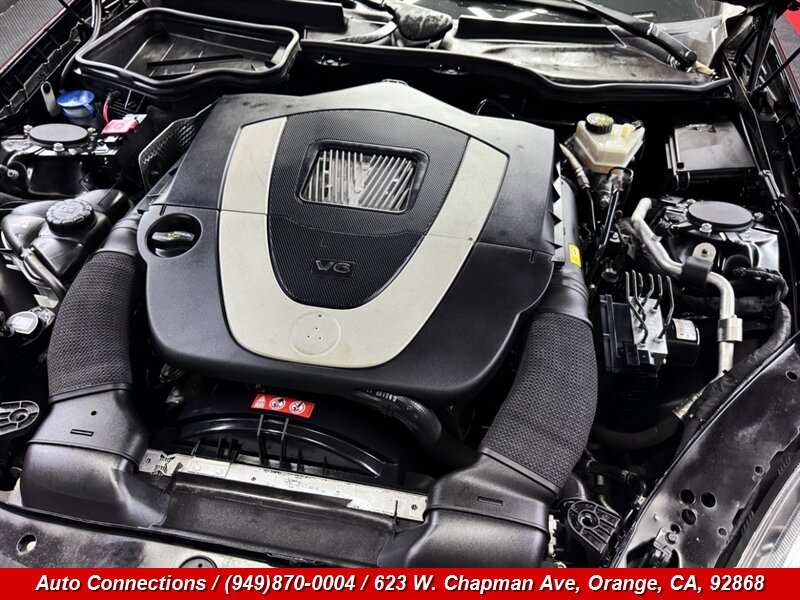 2009 Mercedes-Benz SLK 300 — 3.0L V6, 228 hp and 221 lb-ft of torque. This roadster features the factory power-operated folding hardtop (Vario-Roof), power-adjustable and heated leather front seats, automatic climate control, power windows and locks, remote keyless entry, and a premium AM/FM/CD audio system with auxiliary input. Safety and convenience equipment factory-standard includes ABS, traction control/stability control (ESP), multiple airbags (front and side), tire pressure monitoring, cruise control, fog lamps, alloy wheels, and steering-wheel audio controls. Excellent overall condition, below 67,000 miles (averaging under 4,000 miles/year), with a clean CARFAX.