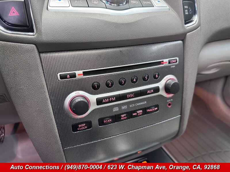 2009 Nissan Maxima 3.5 SV — equipado con un motor V6 3.5L que entrega 290 hp y 261 lb-ft de torque. De fábrica incluye asientos delanteros calefactables con revestimiento tipo cuero, asientos eléctricos (conductor y pasajero), control de clima automático de doble zona, control de crucero, controles de audio al volante, elevalunas/cerraduras/espejos eléctricos, rines de aleación, sistema de audio AM/FM/CD con entrada auxiliar, entrada remota sin llave, y un paquete de seguridad completo que incorpora ABS, control de tracción y estabilidad, airbags laterales frontales y cortinas laterales integrales, además de monitorización de presión de neumáticos. Excelente estado general, menos de 73,000 millas (promedio <5,000 millas/año), un solo propietario y CARFAX limpio.