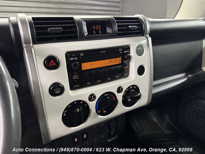 Introducing the 2010 Toyota FJ Cruiser, a rugged and versatile SUV powered by a robust 4.0L V6 engine delivering 259 horsepower and 270 lb-ft of torque. This exceptional vehicle comes equipped with a range of factory default features, including full-time four-wheel drive, skid plates for underbody protection, and a locking rear differential for enhanced off-road capability. The interior boasts comfortable seating for five, air conditioning, a premium audio system, and Bluetooth connectivity. Additionally, this FJ Cruiser is in excellent overall condition and comes with a clean CARFAX report, ensuring peace of mind for your investment.