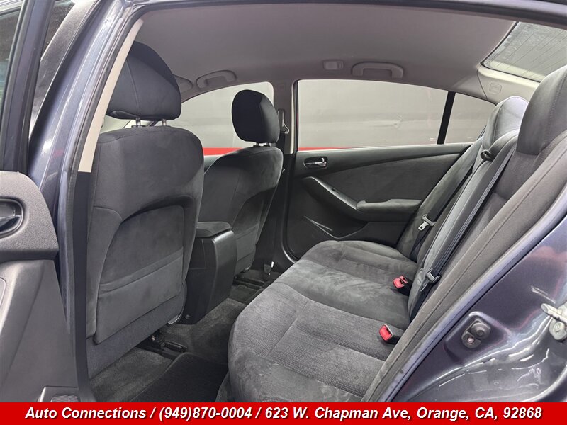2011 Nissan Altima 2.5 — This Altima is powered by a factory 2.5L I4 producing 175 hp and 180 ft·lb of torque, paired with a continuously variable transmission (CVT) and front-wheel drive. Factory-standard equipment includes advanced safety features (dual-stage front airbags, front-seat side-impact airbags, roof-mounted curtain airbags, ABS, traction and electronic stability control, tire pressure monitoring), comfort and convenience features (air conditioning, power windows and door locks, remote keyless entry, cruise control, tilt steering, 60/40 split-folding rear seat, cloth seating), and an AM/FM/CD audio system with auxiliary input. Vehicle shows excellent overall condition, under 98,000 miles (averaging less than 7,000 miles/year), and has a clean CARFAX report.