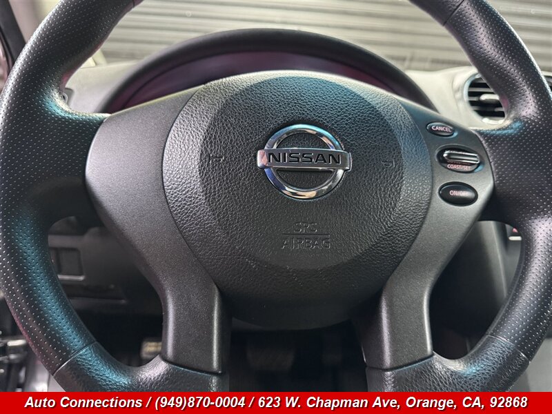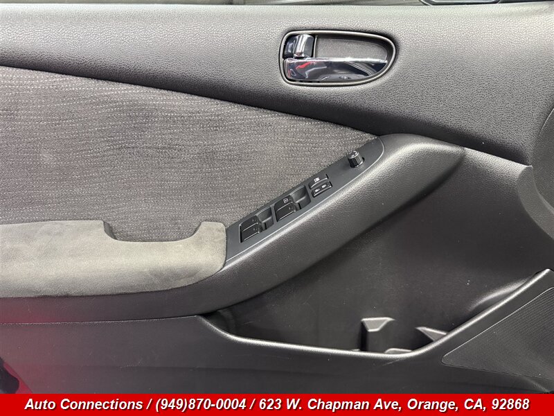 2011 Nissan Altima 2.5 — Este Altima está equipado de fábrica con un motor 2.5L I4 que entrega 175 hp y 180 lb·ft de torque, acoplado a una transmisión continuamente variable (CVT) y tracción delantera. El equipamiento de serie incluye sistemas de seguridad avanzados (airbags frontales de doble etapa, airbags laterales frontales, airbags de cortina montados en el techo, ABS, control de tracción y estabilidad, monitoreo de presión de neumáticos), comodidades (aire acondicionado, ventanas y seguros eléctricos, entrada remota sin llave, control de crucero, volante regulable en inclinación, asiento trasero 60/40 abatible, tapicería de tela) y un sistema de audio AM/FM/CD con entrada auxiliar. Vehículo en excelente estado general, con menos de 98,000 millas (promedio inferior a 7,000 millas/año) y CARFAX limpio.