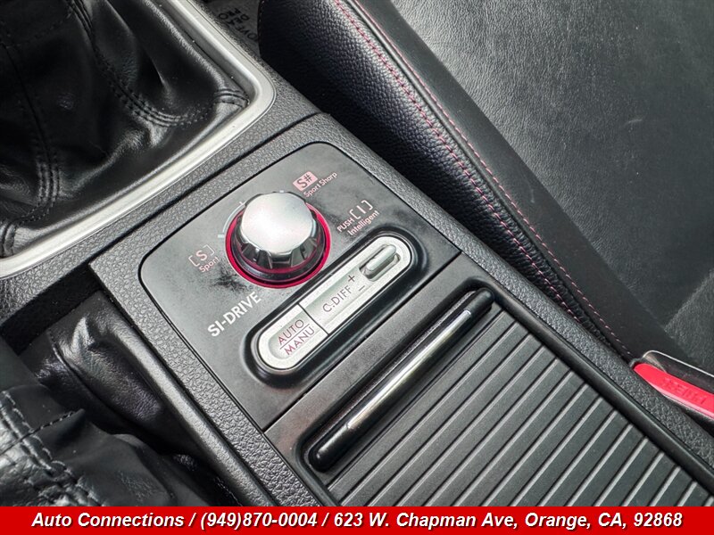 2011 Subaru Impreza WRX STI Limited — Motor 2.5L Turbo H4 con 305 hp y 290 lb-ft, acoplado a una transmisión manual de 6 velocidades y tracción integral simétrica con diferencial central controlado por el conductor (DCCD). El equipamiento de fábrica incluye frenos Brembo de alto rendimiento, suspensión deportiva con diferenciales de deslizamiento limitado delantero y trasero, llantas de aleación de 18 pulgadas, faros HID y luces antiniebla, asientos delanteros calefactables forrados en cuero con ajuste eléctrico para el conductor, climatizador automático bizona, control de crucero y sistema de audio de fábrica con CD/AUX (navegación y audio premium estuvieron disponibles como opciones de fábrica). Menos de 92,000 millas (promedio inferior a 6,000 millas/año), excelente estado general, CARFAX limpio, un solo propietario.