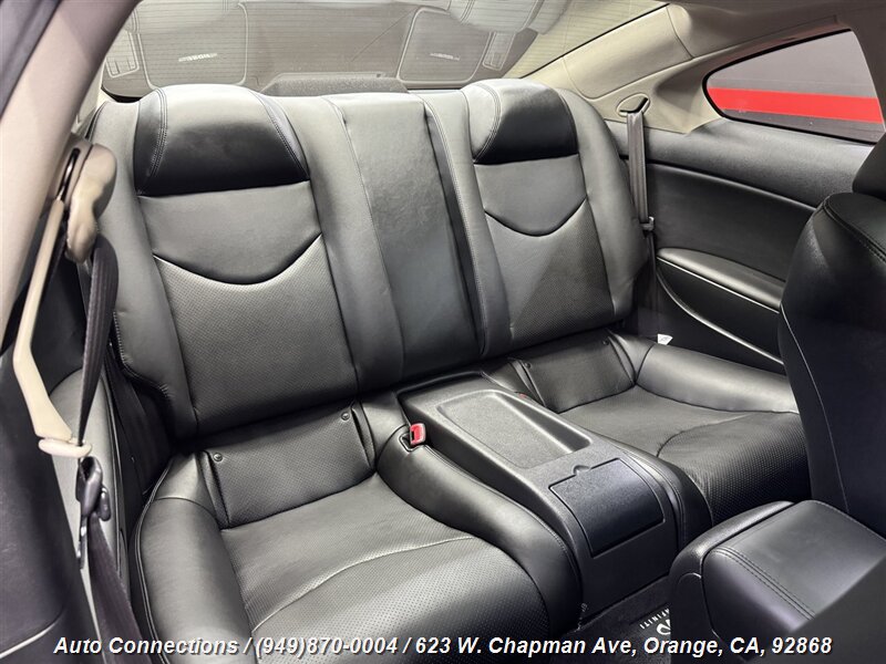 Las caracterÃsticas de fábrica incluyen tapicerÃa de cuero, un sistema de audio premium, un techo corredizo, control automático de clima de doble zona y una cámara de reversa. El G37 Coupe también está equipado con caracterÃsticas avanzadas de seguridad, como control de estabilidad, control de tracción y múltiples airbags, garantizando una experiencia de conducción segura y emocionante.
