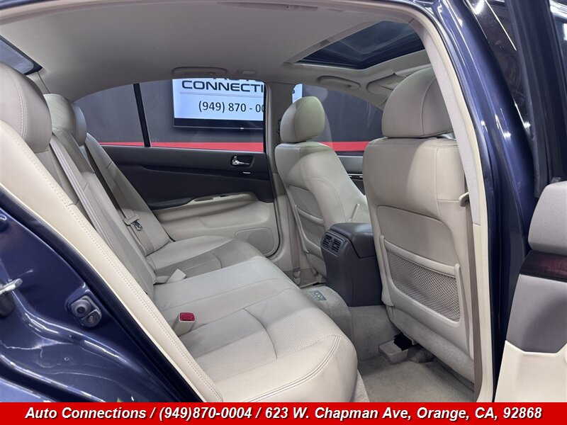 2012 INFINITI G37 Sedan Journey with a 3.7L V6 producing 328 hp and 269 lb-ft of torque. Factory-installed features include a 7-speed automatic transmission with manual shift mode, rear-wheel drive, leather-appointed seating, heated and power-adjustable front seats with driver memory, dual-zone automatic climate control, Bose premium audio with USB/iPod connectivity, Bluetooth hands-free, steering-wheel audio and cruise controls, sunroof, xenon headlights, keyless entry with push-button start, and a full suite of safety systems (ABS, traction and stability control, front/side/curtain airbags, TPMS). Excellent overall condition, below 87,000 miles (averaging under 6,000 miles/year) and a clean CARFAX.