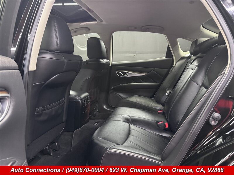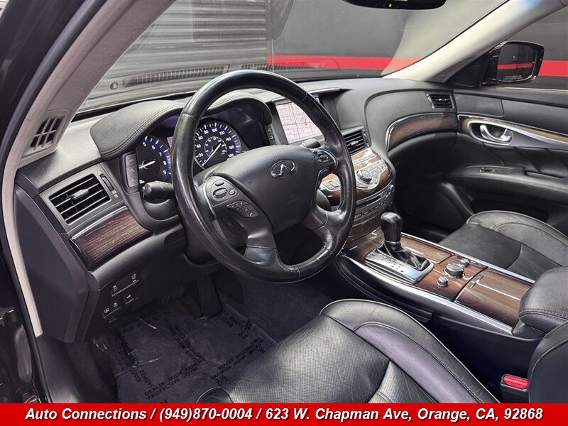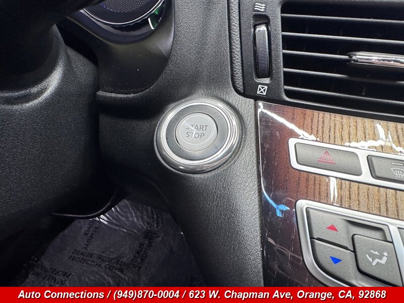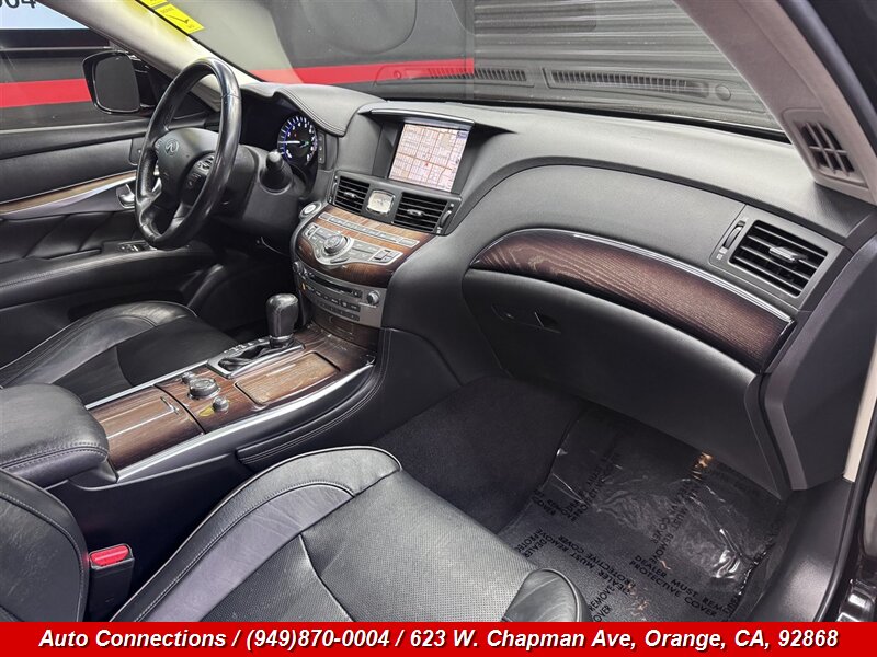 2012 INFINITI M35h — Hybrid 3.5L V6, 302 hp / 258 lb-ft, 7-speed automatic hybrid transmission. This one-owner vehicle has a clean CARFAX, excellent overall condition and under 78,000 miles (averaging less than 6,000 miles/year). Factory-equipped features include leather seating with power-adjustable front seats and memory, heated front seats, dual-zone automatic climate control, INFINITI Hard Drive navigation with voice control, Bose premium audio, Bluetooth hands-free and audio streaming, USB/AUX inputs, keyless Intelligent Key with push-button start, power moonroof, Xenon HID headlights with fog lights, rearview camera, cruise control and steering-wheel audio controls. Safety systems include ABS, traction and stability control plus full front, side and curtain airbags. Professional, well-maintained luxury hybrid ready for immediate delivery.
