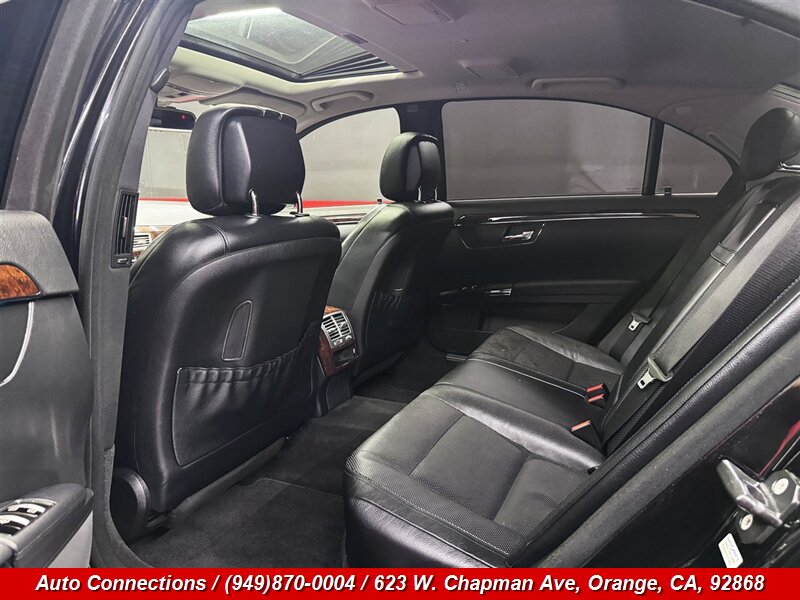 Factory-equipped with a 7-speed automatic transmission and rear-wheel drive, the S 550 features full leather upholstery and genuine wood trim, power-adjustable front seats with memory, heated front seats, dual-zone automatic climate control with rear climate outlets, power sunroof, xenon Bi-Xenon headlights with washers, COMAND infotainment with navigation and Bluetooth connectivity, premium sound system, keyless entry and push-button start (Keyless-Go), AIRMATIC air suspension with adaptive damping, front and rear parking sensors with rearview camera, advanced safety systems including PRE-SAFE, Attention Assist, multiple airbags, ABS, traction and stability control, and available driver-assistance technologies such as adaptive cruise control (DISTRONIC), Blind Spot Assist and Lane Keeping Assist.