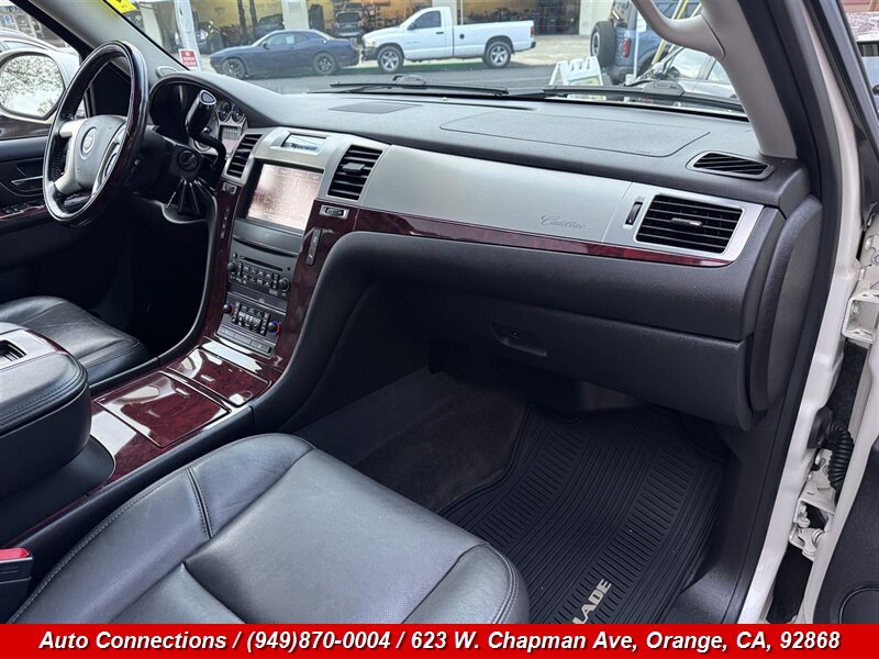 2013 Cadillac Escalade ESV Premium — 6.2L FlexFuel V8 producing 403 hp and 417 lb-ft of torque. One-owner vehicle with a clean CARFAX, excellent overall condition and under 128,000 miles (averaging less than 10,000 miles per year). Factory equipment includes leather-appointed seating, heated and ventilated front seats, power-adjustable front seats with memory, tri-zone automatic climate control, premium audio system, integrated navigation, Bluetooth hands-free, rearview camera with parking sensors, power liftgate and power-folding third-row seating, OnStar, keyless entry/remote start, chrome exterior accents and alloy wheels.