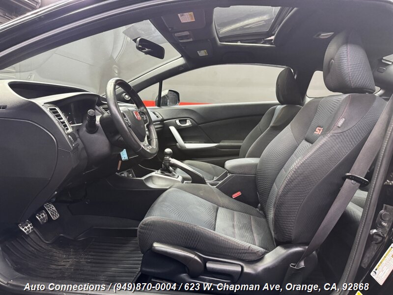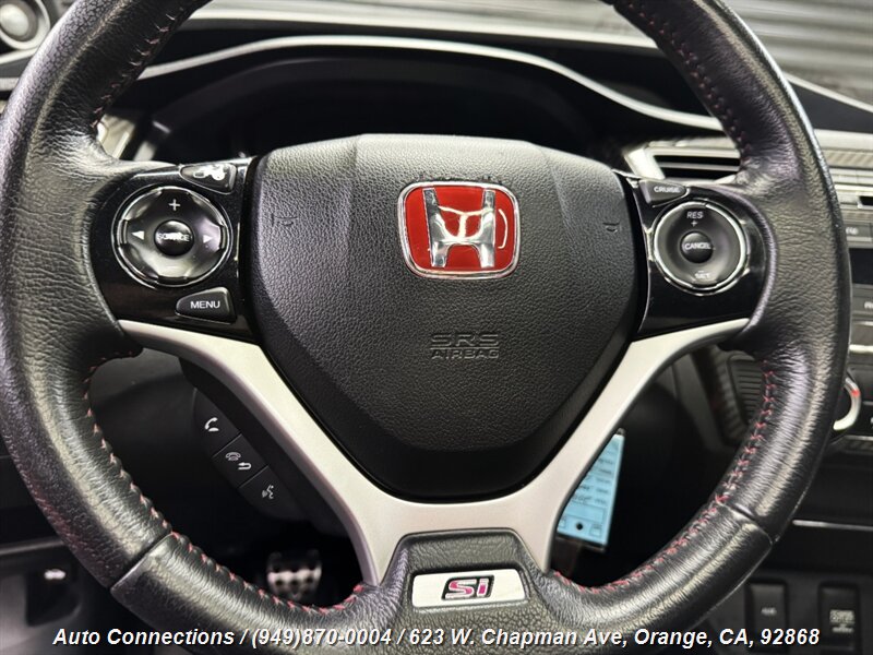 Presentamos el Honda Civic Si 2013, un automóvil compacto deportivo impulsado por un potente motor I4 de 2.4L que entrega 201 caballos de fuerza y 170 lb-ft de torque. Con menos de 101,000 millas y un promedio de menos de 8,000 millas por año, este vehÃculo se encuentra en excelentes condiciones generales. El Civic Si está equipado con una variedad de caracterÃsticas de fábrica, que incluyen un sistema de audio con pantalla de 7 pulgadas, un sistema de audio premium con 7 altavoces, Bluetooth para llamadas y transmisión de audio, una cámara de reversa y un techo corredizo eléctrico. El interior cuenta con asientos deportivos, un volante forrado en cuero y una iluminación de acento roja única. Además, este vehÃculo tiene un informe de CARFAX limpio, lo que garantiza tranquilidad para su próximo propietario.