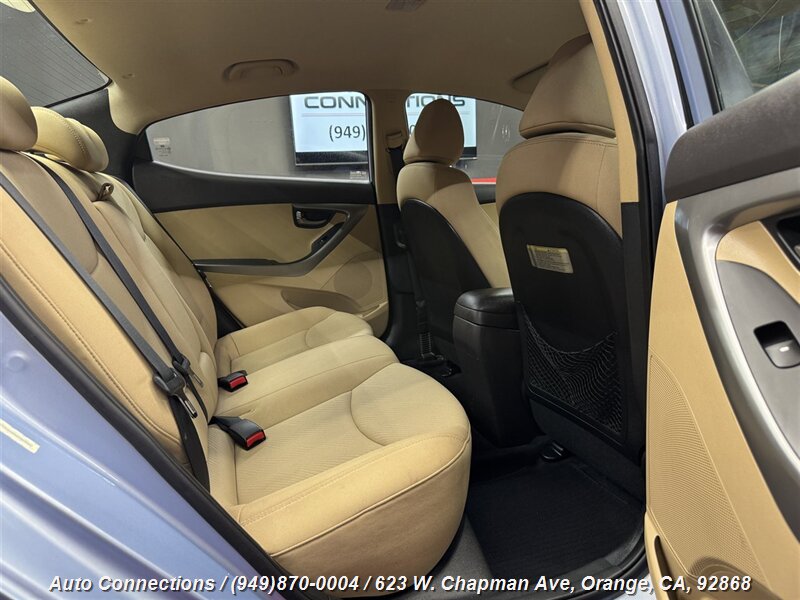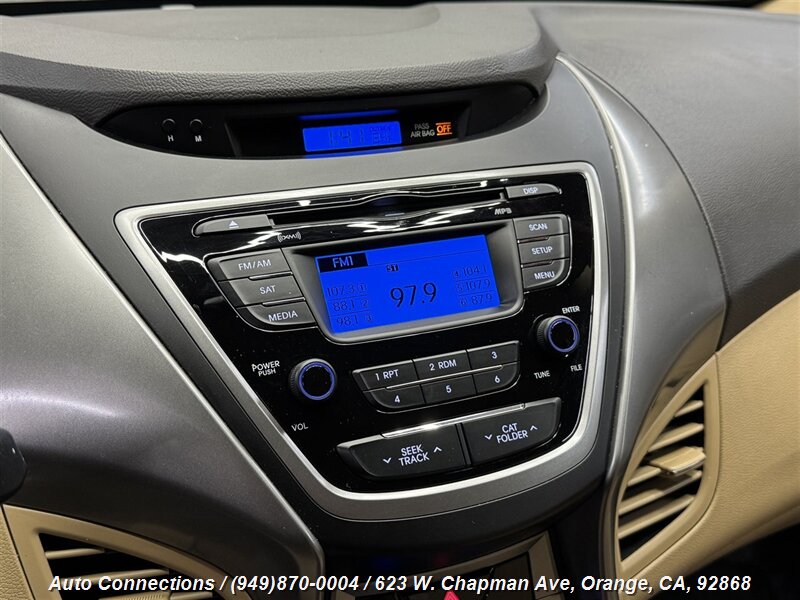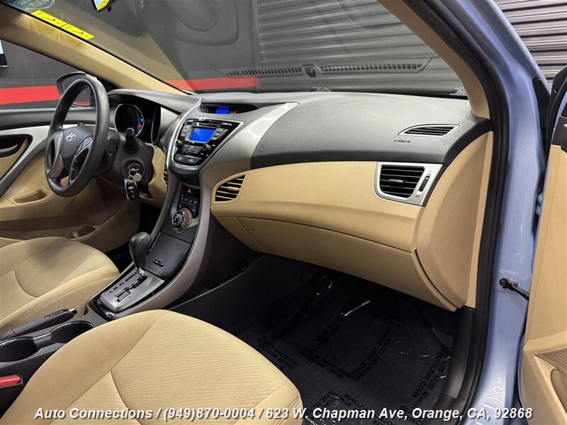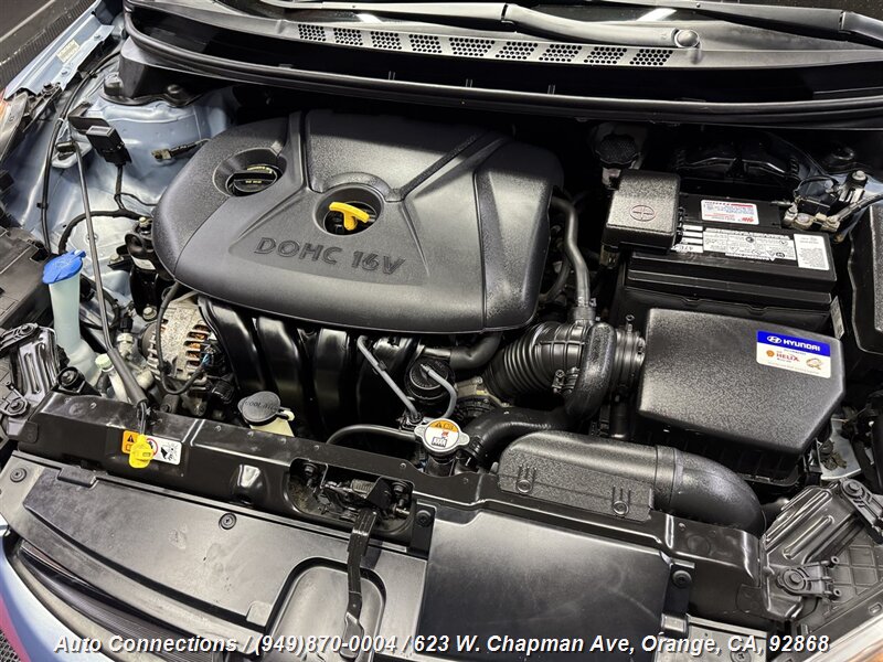 This 2013 Hyundai ELANTRA GLS comes equipped with a 1.8L I4 engine delivering 148hp and 131ft. lbs. of torque. Its factory default features include power windows, power door locks, air conditioning, AM/FM radio with CD player, USB and auxiliary input, steering wheel-mounted audio controls, Bluetooth connectivity, remote keyless entry, and front and side airbags for safety.