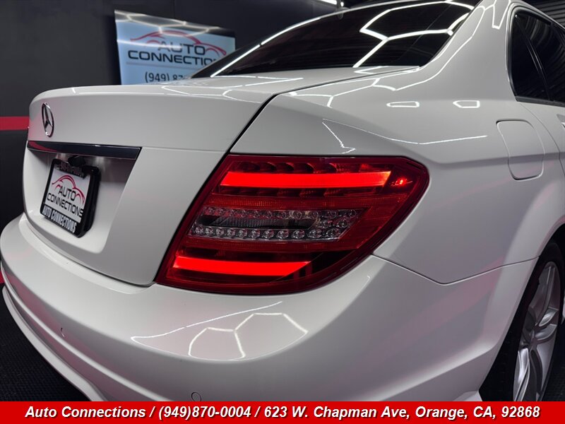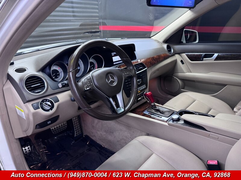 2013 Mercedes-Benz C 250 Sport — 1.8L Turbo I4 (201 hp, 229 lb-ft). Factory equipment includes a 7-speed automatic transmission, sport-tuned suspension and sporty exterior trim, alloy wheels, anti-lock brakes (ABS), Electronic Stability Program (ESP) with traction control, full front and side airbags, tire pressure monitoring, full power accessories (windows, locks, mirrors), dual-zone automatic climate control, Mercedes audio with Bluetooth and USB connectivity, steering-wheel controls, cruise control and split-folding rear seats. This vehicle has excellent overall condition, a clean CARFAX, and below 120,000 miles (averaging under 9,000 miles per year).