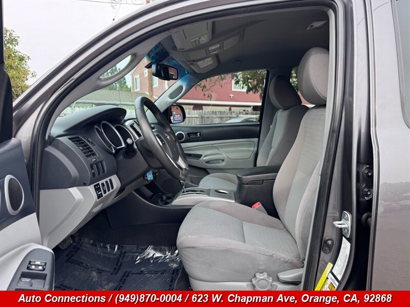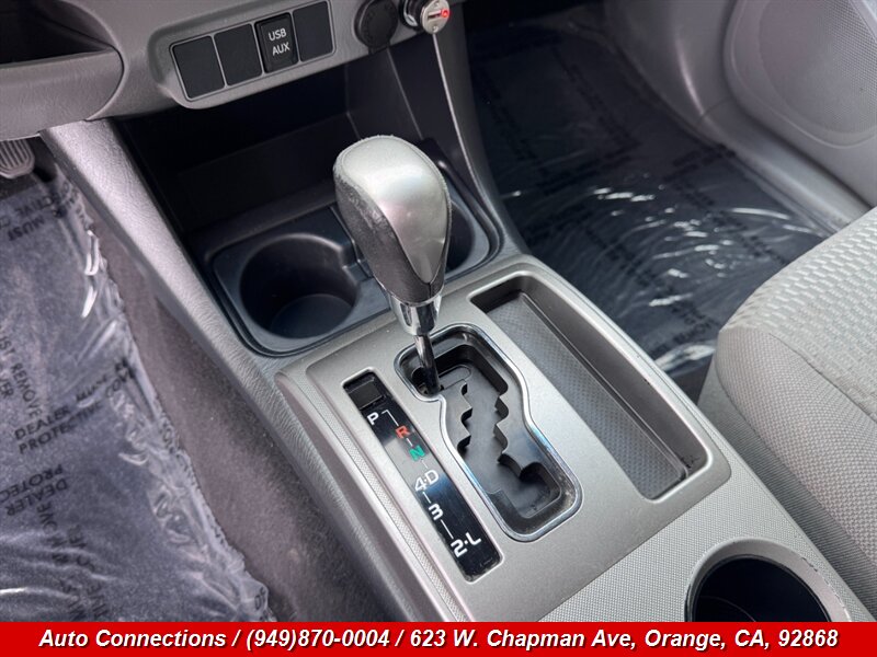 2013 Toyota Tacoma PreRunner V6 — impulsada por un motor 4.0 L V6 que entrega 236 hp y 266 lb-ft de torque. Equipada de fábrica como PreRunner (tracción trasera) con mayor altura al suelo y una suspensión afinada para uso ligero fuera de carretera. Las características de fábrica incluyen aire acondicionado, asientos de tela, ventanas y cerraduras eléctricas, entrada remota sin llave, control de crucero, columna de dirección inclinable, consola central de almacenamiento, sistema de audio AM/FM/CD con entradas auxiliar/USB y conectividad Bluetooth para teléfono, puntos de anclaje resistentes en la caja y un escalón integrado en el parachoques trasero. La seguridad de fábrica incluye bolsas de aire frontales y tipo cortina laterales, frenos ABS, control de estabilidad y control de tracción. El vehículo está en excelente estado general, cuenta con un CARFAX limpio y menos de 133,000 millas (promediando menos de 10,000 millas por año).