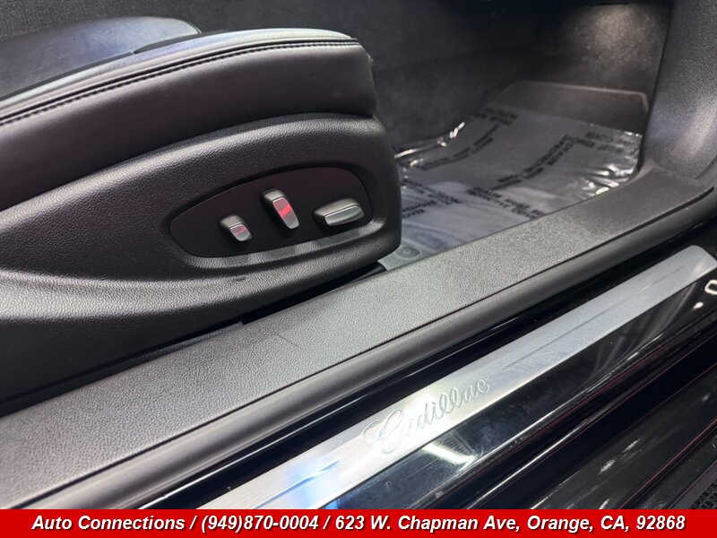 Las características de fábrica incluyen asientos revestidos en cuero de primera calidad con asientos delanteros calefactables y ajustes eléctricos con memoria para conductor y pasajero, control de clima automático de doble zona, sistema de infoentretenimiento Cadillac CUE con navegación, Bluetooth, USB e integración para smartphone, audio premium Bose, OnStar con 4G LTE y diagnósticos del vehículo, acceso sin llave con botón de arranque y arranque remoto, cámara trasera y sensores de estacionamiento, luces LED de circulación diurna y firma lumínica, rines de aleación de aluminio, frenado regenerativo con modos de conducción seleccionables, ABS con control de tracción y estabilidad, y un conjunto completo de bolsas de aire.