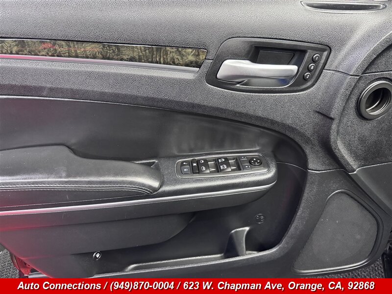 2014 Chrysler 300C — impulsado por el motor HEMI 5.7L V8 (363 hp, 394 lb-ft) con el sistema de Desplazamiento Múltiple de fábrica y transmisión automática. El equipo de fábrica incluye asientos tapizados en cuero premium, asientos delanteros calefactados, asientos delanteros con ajustes eléctricos y memoria del conductor, climatizador automático de doble zona, volante forrado en cuero con controles de audio y crucero, sistema Uconnect con Bluetooth y entradas USB/Aux, audio premium, elevalunas/cerraduras/espejos eléctricos, entrada sin llave/arranque remoto en muchos modelos, llantas de aleación y faros antiniebla, además de sistemas de seguridad completos (ABS, control de tracción y estabilidad, airbags frontales/ laterales/ de cortina y monitorización de presión de neumáticos). Este vehÃculo está en excelente estado general, con CARFAX limpio y kilometraje excepcionalmente bajo — menos de 86,000 millas (promedio inferior a 7,000 millas por año).