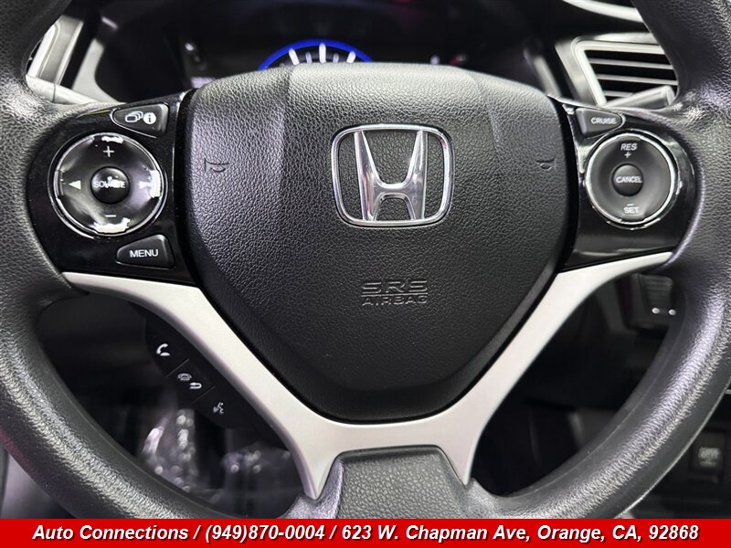 2014 Honda Civic EX — Este sedán bien mantenido cuenta con un motor 1.8L I4 que entrega 143 hp y 129 lb-ft de torque. Las características de fábrica incluyen techo corredizo eléctrico de un solo toque, rines de aleación de 16 pulgadas, control de clima automático, ventanas y seguros eléctricos, entrada remota con llave, control de crucero, volante con ajuste de inclinación y profundidad, Bluetooth para llamadas y audio, entrada USB para audio y controles de audio en el volante, asiento trasero abatible 60/40 y un paquete de seguridad integral con ABS, control de tracción, Vehicle Stability Assist y bolsas de aire frontales, laterales y de cortina. El vehículo tiene menos de 86,000 millas (promedio inferior a 7,000 millas por año), está en excelente condición general y cuenta con un informe CARFAX limpio.
