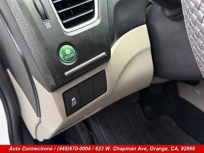 2014 Honda Civic LX — 1.8L I4, 143 hp, 129 lb-ft. Factory equipment includes air conditioning, cloth seating with 60/40 split-fold rear seat, power windows and door locks with remote keyless entry, tilt-and-telescoping steering wheel, cruise control, steering-wheel audio controls, AM/FM/CD audio with USB/AUX and Bluetooth hands-free, 16-inch wheels with covers, and intermittent wipers. Standard safety features include anti-lock brakes, Vehicle Stability Assist with traction control, front-side and side-curtain airbags, tire-pressure monitoring and LATCH child-seat anchors. This vehicle is in excellent overall condition and has a clean CARFAX report.