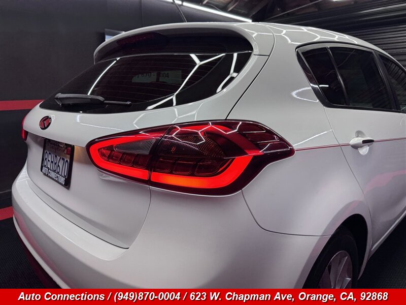 2014 Kia Forte5 EX with a 2.0L I4 engine producing 173 hp and 154 lb-ft of torque. Factory-equipped with power windows and locks, remote keyless entry, cruise control, steering-wheel audio and phone controls, Bluetooth hands-free and audio streaming, AM/FM/CD/MP3 stereo with USB/AUX inputs, 60/40 split-folding rear seats and generous hatchback cargo space, alloy wheels, fog lights, and a full complement of safety features including ABS, traction control, electronic stability control, and multiple airbags. Below 67,000 miles (averaging under 6,000 miles per year), this vehicle is in excellent overall condition and comes with a clean CARFAX report.