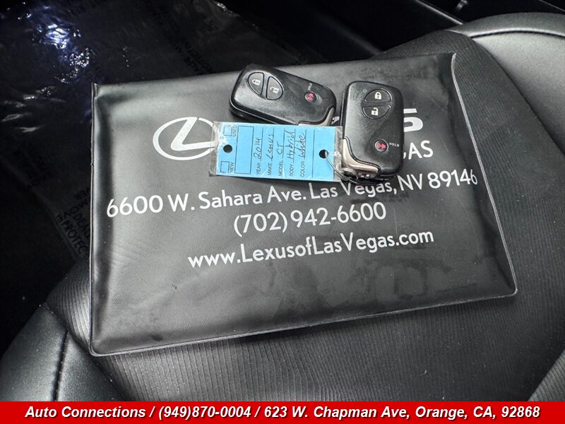 2014 Lexus CT 200h — 1.8L Hybrid I4 (134 hp) with CVT. Factory-equipped with Lexus Hybrid Drive and front-wheel drive, stability control, traction control, ABS, multiple airbags and tire pressure monitoring. Comfort and convenience features include NuLuxe seating, dual-zone automatic climate control, power windows/locks/mirrors, push-button start with SmartAccess, cruise control, tilt/telescoping steering wheel and 60/40 split-fold rear seats. Infotainment and connectivity include Bluetooth hands-free and audio streaming, USB/AUX inputs, AM/FM/CD with a 6-speaker system, steering-wheel audio controls and a rearview camera. Vehicle is in excellent overall condition, under 82,000 miles (averaging less than 7,000 miles per year) and has a clean CARFAX.