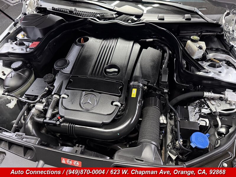 2014 Mercedes-Benz C 250 Sport — powered by a 1.8L turbocharged inline-4 producing 201 hp and 229 ft-lbs, paired with a 7-speed automatic transmission. Factory-standard features include sport-tuned suspension and Sport exterior styling with alloy wheels, projector headlights with LED daytime running lights and fog lamps, dual-zone automatic climate control, power-adjustable front seats with lumbar support and split-folding rear seat, leather-wrapped multifunction steering wheel with audio and cruise controls, Bluetooth hands-free and audio streaming, USB/AUX inputs and infotainment display, keyless entry, and a full suite of safety systems (multiple airbags, ABS, electronic stability and traction control, Brake Assist, ATTENTION ASSIST). This vehicle has excellent mileage — under 59,000 miles (averaging less than 5,000 miles per year), is in excellent overall condition, and has a clean CARFAX.