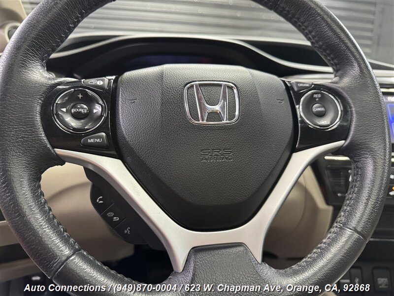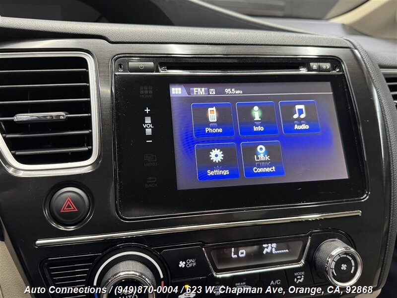 El Honda Civic EX-L 2015 es un sedán elegante y confiable, impulsado por un motor I4 de 1.8L que entrega 143 caballos de fuerza y 129 lb-pie de torque. Con menos de 96,000 millas, promediando menos de 9,000 millas por año, este vehÃculo se encuentra en excelentes condiciones generales. Cuenta con un interior sofisticado tapizado en cuero, un techo corredizo eléctrico y un sistema de audio premium con la pantalla de punto ciego LaneWatch de Honda. Otras comodidades incluyen asientos delanteros calefaccionados, control de clima de doble zona y una cámara de reversa, garantizando tanto confort como seguridad. Este Civic tiene un informe de CARFAX limpio, lo que lo convierte en una opción confiable para su próximo vehÃculo.