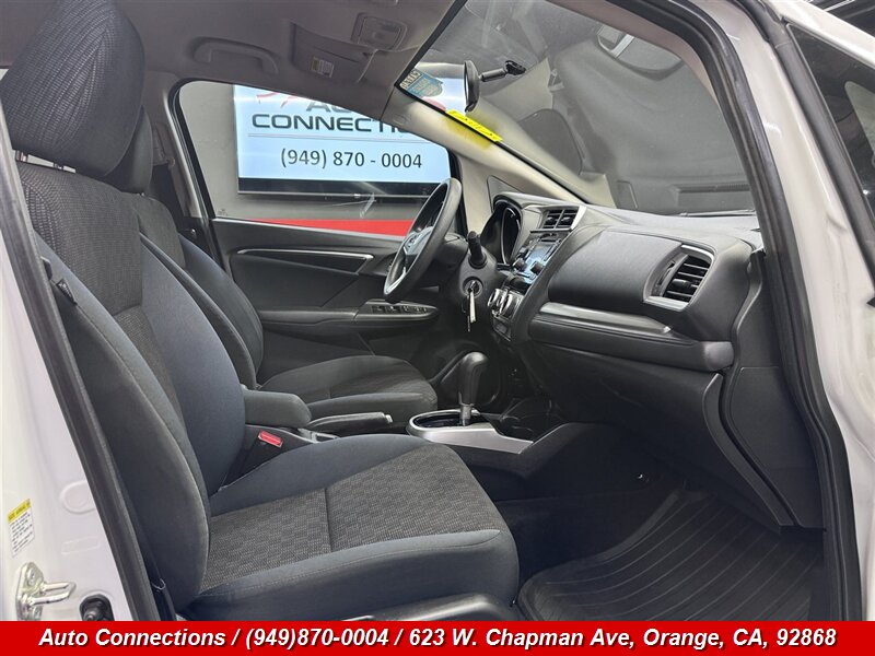 2015 Honda Fit LX — 1.5L I4, 130 hp, 114 lb-ft of torque. Factory-standard equipment includes the fuel-efficient i-VTEC engine with a 5-speed manual or available CVT automatic transmission; Honda Magic Seat with multiple cargo and seating configurations; multi-angle rearview camera; Bluetooth HandsFreeLink and audio streaming; USB/AUX inputs and AM/FM/CD audio; air conditioning, power windows and door locks with remote keyless entry; and a full safety package with ABS, Vehicle Stability Assist (VSA), traction control and multiple airbags. Below 75,000 miles (averaging under 7,000 miles per year). Excellent overall condition with a clean CARFAX.