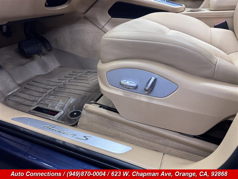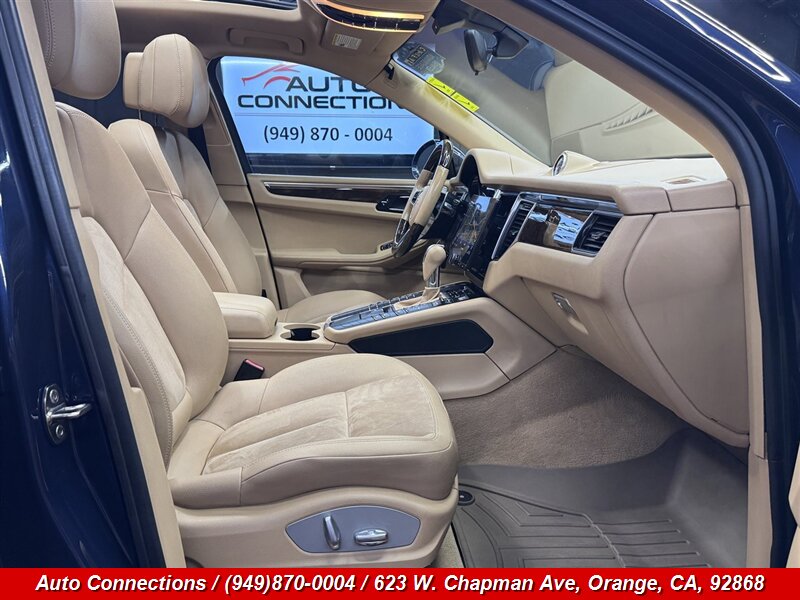 2015 Porsche Macan S — powered by a 3.0L twin-turbo V6 producing 340 hp and 339 lb-ft of torque. Factory equipment includes a 7-speed PDK automatic transmission with Porsche Traction Management all-wheel drive, Porsche Communication Management (PCM) infotainment with navigation, Bluetooth and USB, dual-zone automatic climate control, leather seating with power-adjustable front seats, rearview camera and parking sensors, stability and traction control with ABS and multiple airbags, and premium alloy wheels with HID/LED lighting. Under 86,000 miles (averaging less than 8,000 miles per year), in excellent overall condition, and backed by a clean CARFAX report.