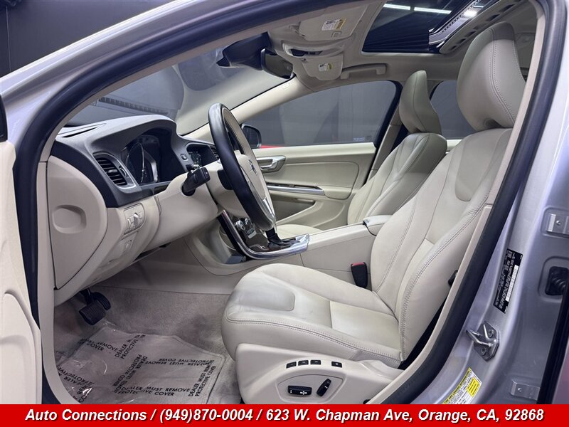 2015 Volvo S60 T5 Drive-E Premier con motor 2.0L Turbo I4 SULEV (240 hp, 258 lb-ft). El vehÃculo se encuentra en excelente estado general con kilometraje excepcional — por debajo de 47,000 millas (promediando menos de 4,000 millas por año) — y cuenta con un informe CARFAX limpio. Las caracterÃsticas de fábrica incluyen asientos en cuero, asientos delanteros calefactados con ajuste eléctrico y memoria para el conductor, control de clima automático de doble zona, techo panorámico, entrada sin llave y encendido por botón, sistema de infoentretenimiento Volvo Sensus con Bluetooth y conexión USB, controles de audio y teléfono en el volante, cámara de marcha atrás y sensores de estacionamiento, faros Xenón con encendido/apagado automático y limpiaparabrisas sensibles a la lluvia, llantas de aleación y el paquete de seguridad estándar de Volvo que incluye City Safety para mitigación de colisiones a baja velocidad, múltiples airbags, ABS y control electrónico de estabilidad.
