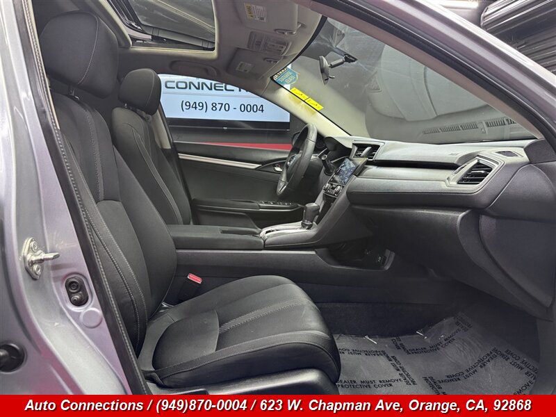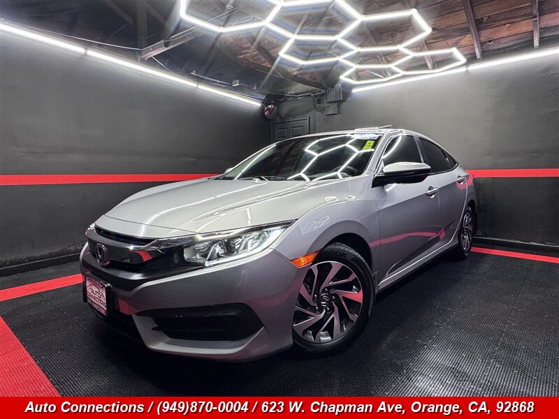 2016 Honda Civic EX — Impulsado por un motor de fábrica 2.0L de cuatro cilindros que entrega 158 hp y 138 lb-ft de torque. Equipado de fábrica con comodidades y conveniencias como encendido por botón con llave inteligente, Bluetooth para llamadas y transmisión de audio, sistema de audio con pantalla táctil con AM/FM, entradas USB y AUX, cámara de reversa, control de clima automático, control de crucero, ventanas/cerraduras/espejos eléctricos, entrada sin llave remota, asientos traseros abatibles 60/40 y tapicería de tela. Las características de seguridad de serie incluyen ABS, control de tracción, asistencia de estabilidad del vehículo y múltiples bolsas de aire. Vehículo en excelente estado general, con menos de 85,000 millas (promedio inferior a 8,000 millas por año) y con informe CARFAX limpio.
