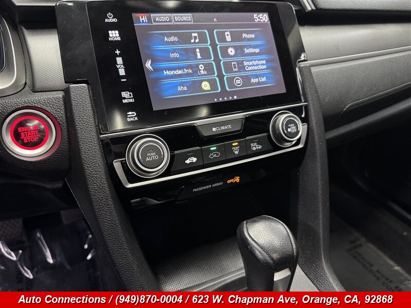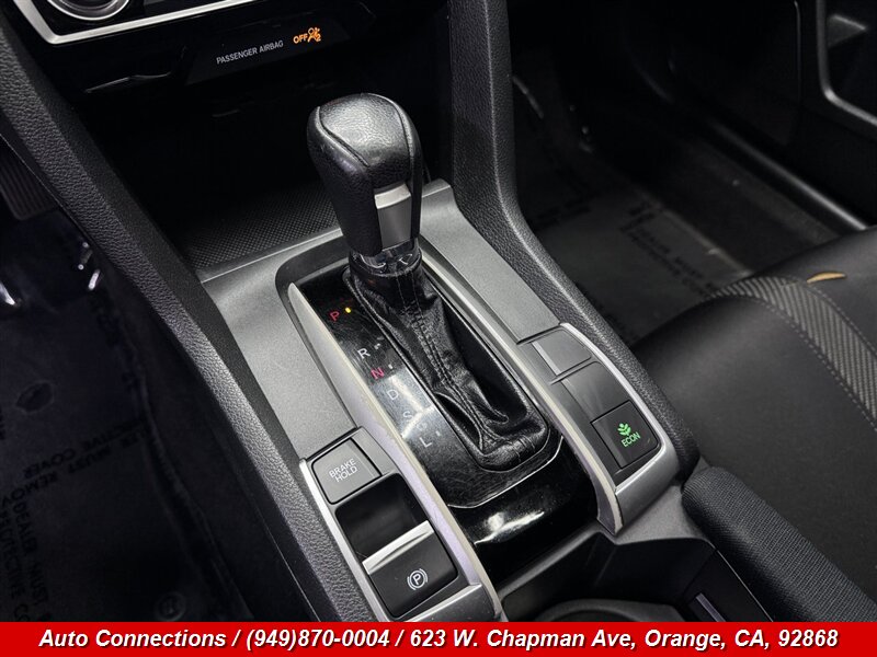 2016 Honda Civic EX — Powered by a factory 2.0L inline-4 producing 158 hp and 138 lb-ft of torque. Factory-equipped with comfort and convenience features including push-button start with smart key, Bluetooth hands-free phone and audio streaming, touchscreen audio with AM/FM, USB and AUX inputs, rearview camera, automatic climate control, cruise control, power windows/locks/mirrors, remote keyless entry, 60/40 split-folding rear seats and cloth seating surfaces. Standard safety features include ABS, traction control, vehicle stability assist and multiple airbags. This vehicle is in excellent overall condition, has below 85,000 miles (averaging under 8,000 miles per year) and a clean CARFAX report.