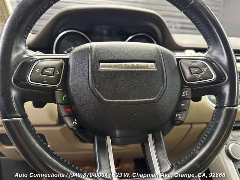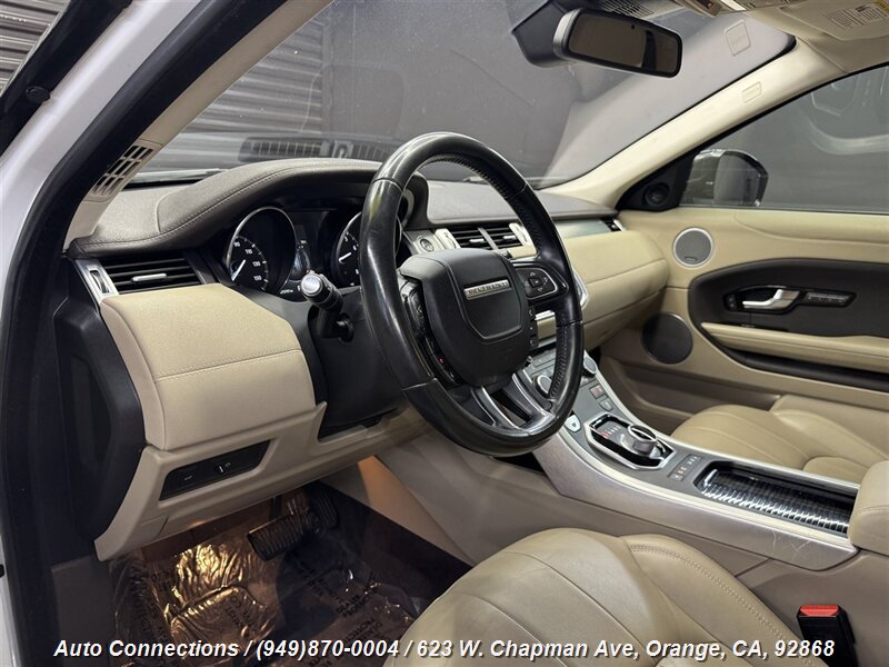 Introducing the 2016 Land Rover Range Rover Evoque SE, a luxurious compact SUV that combines style and performance. Powered by a robust 2.0L Turbo I4 engine, delivering 240 horsepower and 250 ft-lbs of torque, this vehicle ensures an exhilarating driving experience. With under 74,000 miles, averaging less than 8,000 miles per year, it is in excellent overall condition and boasts a clean CARFAX report. Factory features include a panoramic sunroof, premium leather upholstery, a touchscreen infotainment system, navigation, a rearview camera, and advanced safety features such as parking sensors and lane departure warning. Experience the perfect blend of luxury and capability with this exceptional Range Rover Evoque SE.