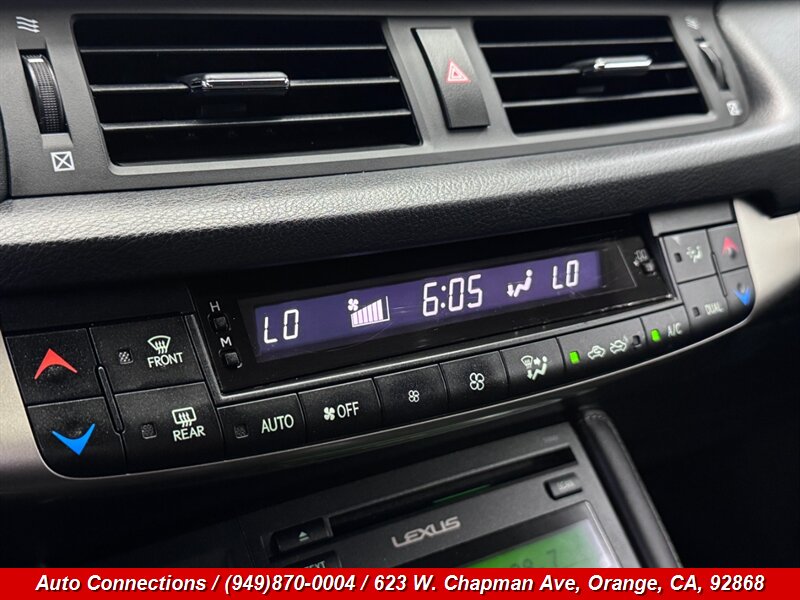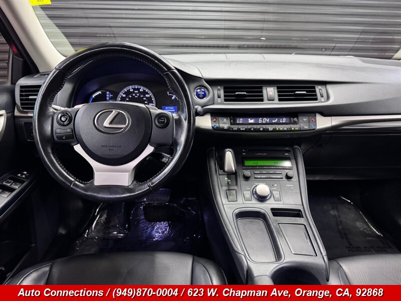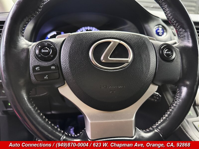 2016 Lexus CT 200h with a 1.8L Hybrid I4 (134 hp). Factory-standard features include Lexus Hybrid Drive with continuously variable transmission (CVT) and regenerative braking, front-wheel drive, alloy wheels, projector headlights with LED daytime running lights, automatic climate control, power windows and locks with remote keyless entry, tilt/telescoping steering wheel, cruise control, NuLuxe synthetic-leather seating with split-folding rear seat and power-adjustable driver’s seat, tVehicle is in excellent overall condition and has a clean CARFAX report.