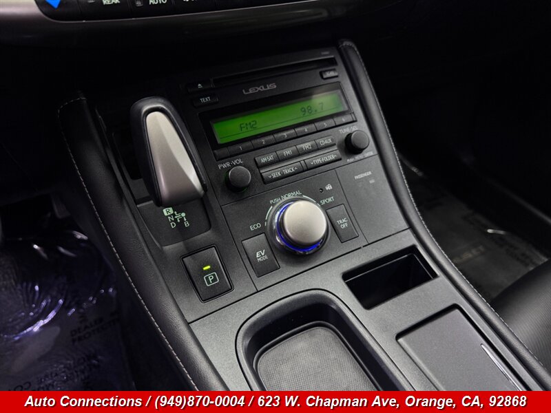 2016 Lexus CT 200h con motor hÃbrido 1.8L I4 (134 hp). Las caracterÃsticas de fábrica incluyen Lexus Hybrid Drive con transmisión continuamente variable (CVT) y frenado regenerativo, tracción delantera, llantas de aleación, faros con proyector y luces diurnas LED, climatizador automático, elevalunas y seguros eléctricos con entrada remota, volante con ajuste de inclinación y profundidad, control de crucero, tapicerÃa sintética NuLuxe con asiento trasero abatible y asiento del conductor con ajuste eléctrico, El vehÃculo está en excelente estado general y cuenta con un informe CARFAX limpio.