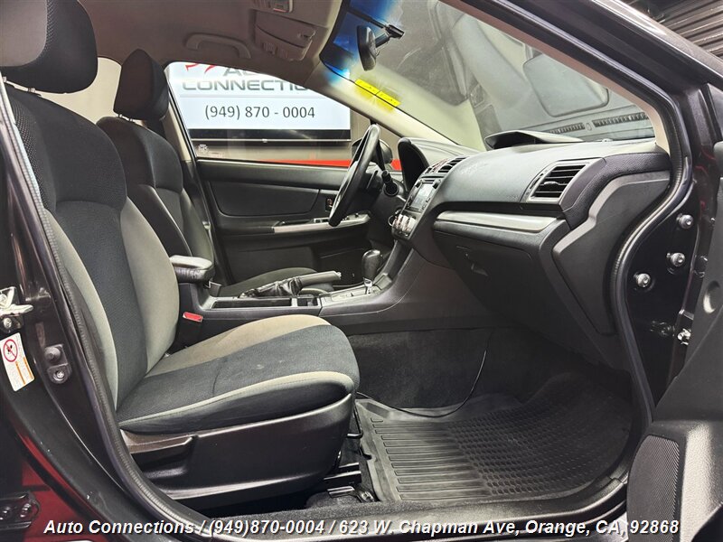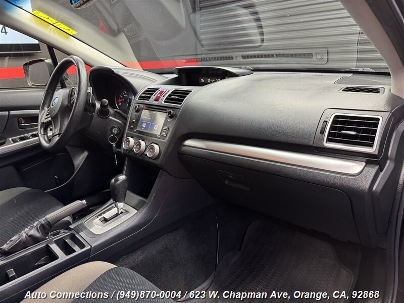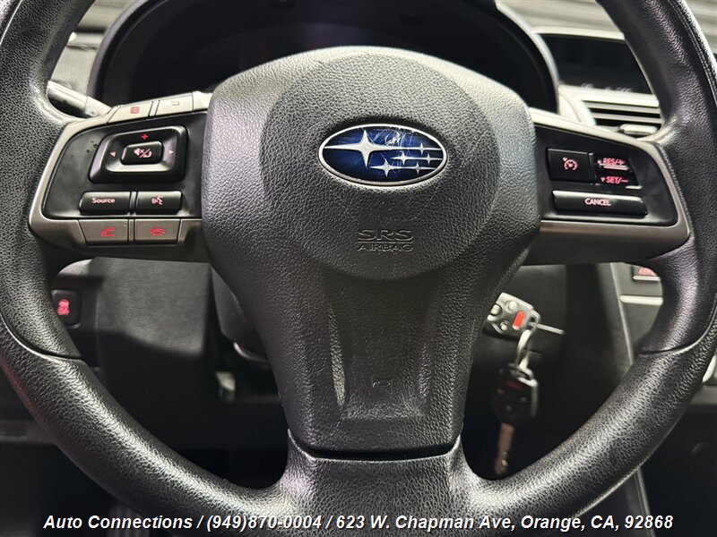 El Subaru Impreza 2.0i de 2016 es un sedán compacto conocido por su fiabilidad y capacidad de tracción en las cuatro ruedas. Impulsado por un motor H4 de 2.0L que produce 148 caballos de fuerza y 145 lb-ft de torque, este vehÃculo ofrece un rendimiento equilibrado con una impresionante eficiencia de combustible. Las caracterÃsticas de fábrica incluyen una cámara de reversa, conectividad Bluetooth, un sistema de infoentretenimiento con pantalla táctil de 6.2 pulgadas, un sistema de audio de cuatro altavoces y el reconocido sistema de tracción en las cuatro ruedas simétrica de Subaru. Este modelo se encuentra en excelente estado general, tiene un informe CARFAX limpio y ha tenido solo un propietario.