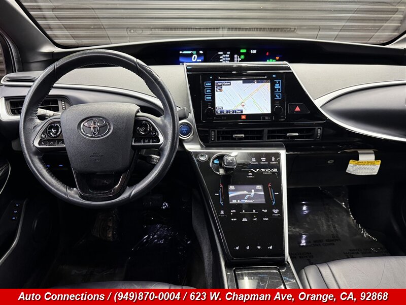 2016 Toyota Mirai — Hydrogen fuel cell vehicle with 151 hp and 247 lb-ft of torque. This Mirai is in excellent overall condition, with under 63,000 miles (averaging less than 6,000 miles per year) and a clean CARFAX. Factory equipment includes the fuel cell electric drivetrain with regenerative braking, seating for four with leather-trimmed heated front seats and power adjustments for the driver, dual-zone automatic climate control, keyless entry with push-button start, multi-function steering wheel, and an infotainment system with navigation, Bluetooth and USB connectivity. Additional standard features include a rearview camera, alloy wheels, automatic headlights, power windows/locks/mirrors, cruise control, and a full complement of safety systems (ABS, traction and stability control, and multiple airbags).
