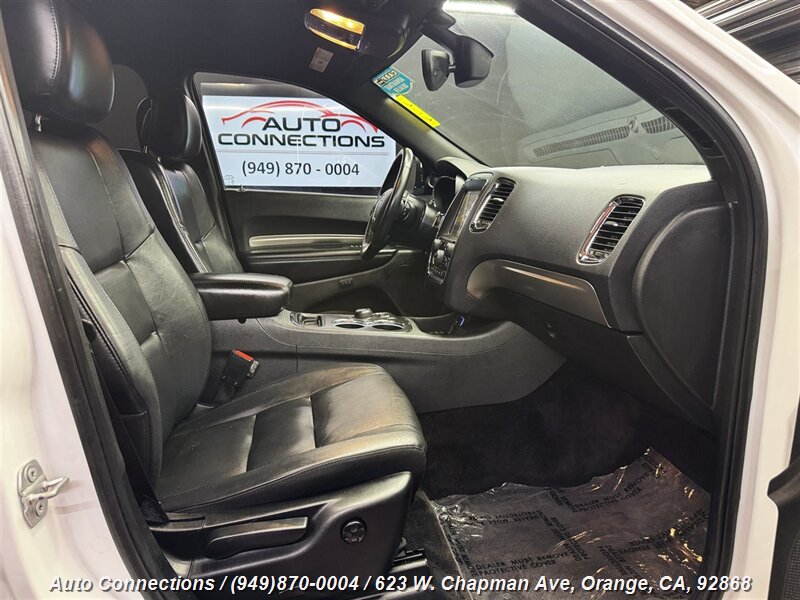Experience the power and versatility of the 2017 Dodge Durango GT, equipped with a robust Pentastar 3.6L V6 engine, delivering 295 horsepower and 260 ft-lbs of torque. This SUV features an elegant leather interior, advanced infotainment system with a touchscreen display, Bluetooth connectivity, and a premium sound system. Enjoy the convenience of three rows of seating, a rearview camera, parking sensors, and a suite of safety features including stability control and multiple airbags. This vehicle is in excellent overall condition, has a clean CARFAX report, and has had only one owner.