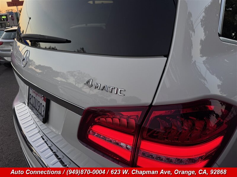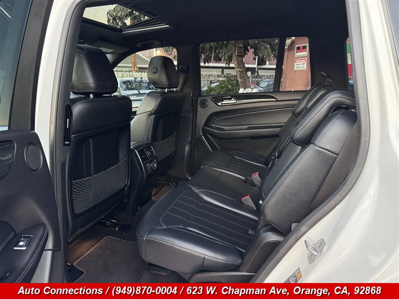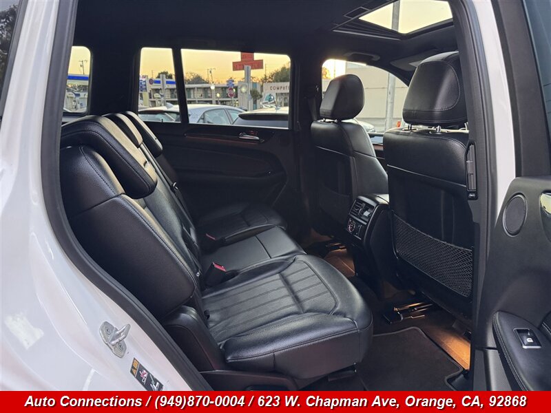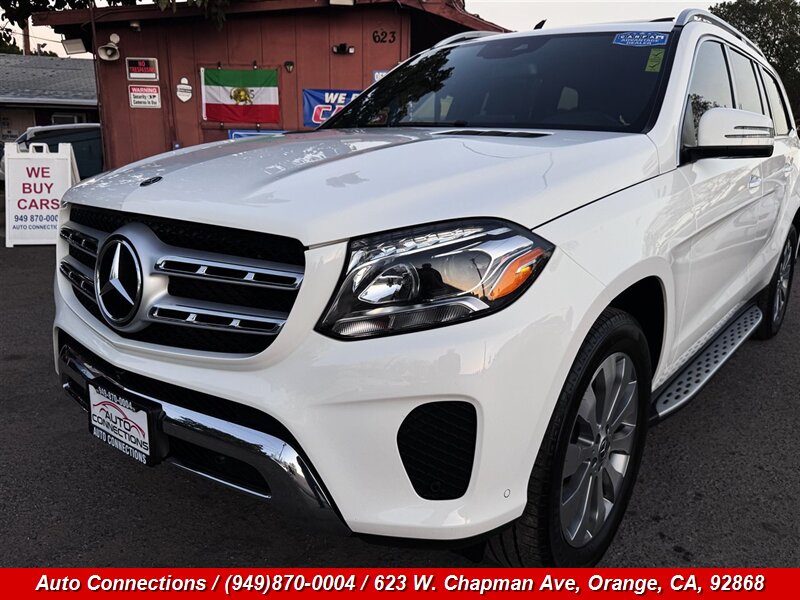 2017 Mercedes-Benz GLS 450 with a 3.0L twin-turbo V6 producing 362 hp and 369 lb-ft of torque. Factory-standard equipment typically includes 4MATIC all-wheel drive, 9G-TRONIC 9-speed automatic transmission, three-row seating for seven, power front seats with memory, tri-zone automatic climate control, COMAND infotainment with navigation/Bluetooth/USB, rearview camera with parking sensors, power liftgate, LED headlights, alloy wheels, keyless start, and a full complement of airbags and electronic stability/traction control. Vehicle has under 89,000 miles (averaging less than 9,000 miles per year), is in excellent overall condition, and has a clean CARFAX.