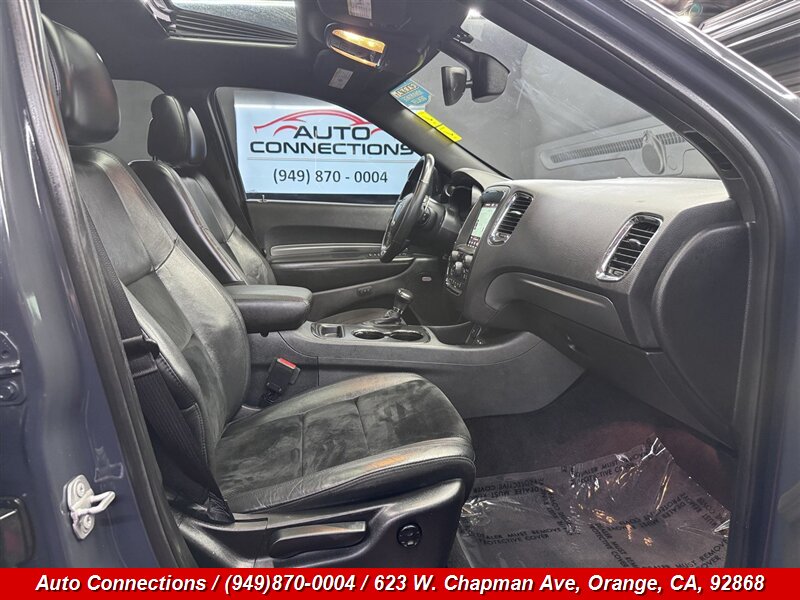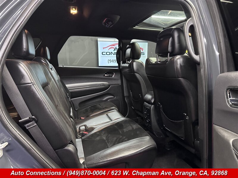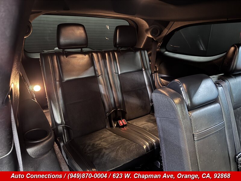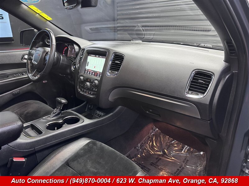 2018 Dodge Durango GT — powered by the reliable Pentastar 3.6L V6 producing 295 hp and 260 ft-lbs of torque. Factory-equipped with three-row seating for up to seven passengers and versatile split-folding rear seats, Uconnect touchscreen infotainment with Bluetooth and USB inputs, rearview camera, tri-zone automatic climate control, power windows/locks, steering-wheel audio and cruise controls, keyless entry, and a full safety suite including multiple airbags, ABS and electronic stability control. This Durango has excellent overall condition, clean CARFAX, and low mileage (under 82,000 miles, averaging less than 10,000 miles per year).