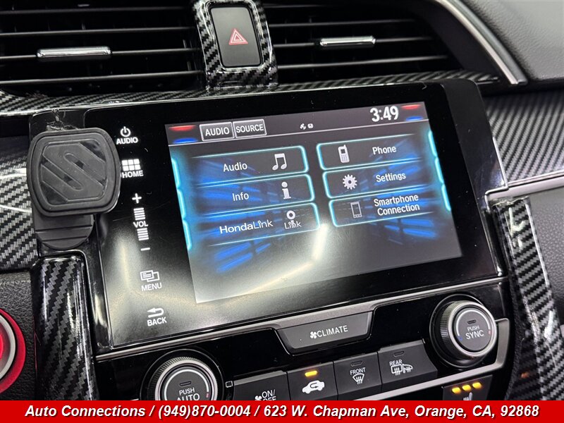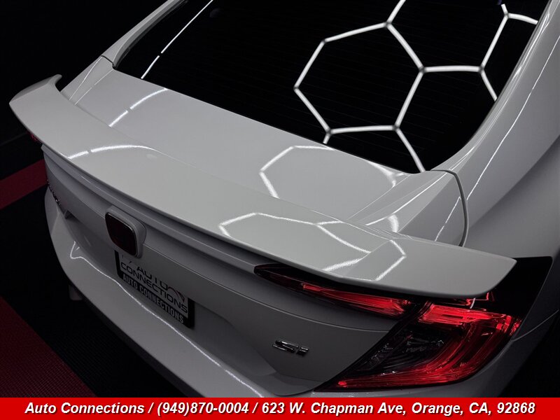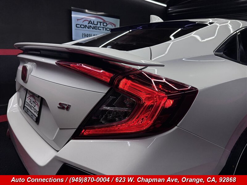 2018 Honda Civic Si — 1.5L Turbo I4 producing 205 hp and 192 ft-lb of torque. This Si is in excellent overall condition and comes with a clean CARFAX. Factory equipment includes a 6-speed manual transmission with rev-match control, helical limited-slip differential, sport-tuned suspension and larger alloy wheels/brakes for improved handling; exterior styling with dual exhaust and LED daytime running lights; and an interior with supportive sport seats with contrast stitching, leather-wrapped steering wheel, aluminum sport pedals, automatic climate control and full power accessories. Infotainment and convenience features include a 7-inch Display Audio touchscreen with Apple CarPlay/Android Auto, Bluetooth and USB connectivity, rearview camera, keyless entry with push-button start, and cruise control.