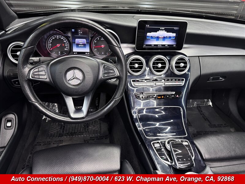 2018 Mercedes-Benz C 300 — powered by a 2.0L Turbo I4 (241 hp / 273 lb-ft). Factory equipment includes the 9-speed automatic transmission with standard rear-wheel drive (4MATIC available), LED lighting, dual-zone automatic climate control, power-adjustable front seats with driver memory and MB-Tex seating, Mercedes-COMAND infotainment with central controller, Bluetooth and USB connectivity, rearview camera, full airbag system, stability/traction control, ATTENTION ASSIST and Collision Prevention Assist — all factory-fitted for comfort, convenience and safety. This vehicle is in excellent condition, has a clean CARFAX, and under 88,000 miles (averaging less than 10,000 miles/year).