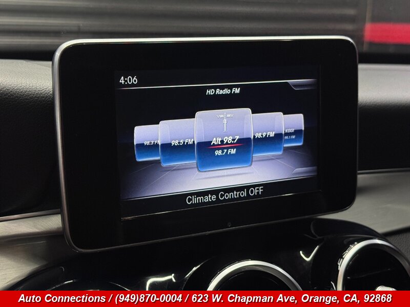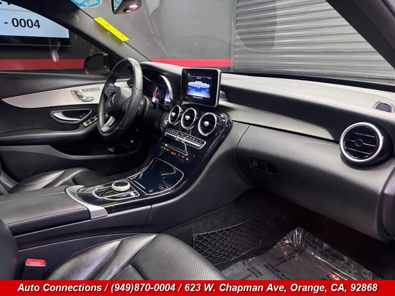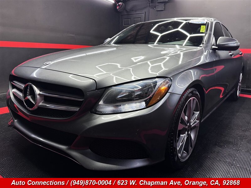 2018 Mercedes-Benz C 300 — powered by a 2.0L Turbo I4 producing 241 hp and 273 ft-lb of torque. Vehicle is in excellent overall condition with a clean CARFAX. Factory-default equipment includes a smooth automatic transmission with rear-wheel drive (4MATIC optional), power-adjustable front seats with memory, MB-Tex leatherette upholstery, dual-zone automatic climate control, leather-wrapped multifunction steering wheel, power windows/locks/mirrors, keyless entry with push-button start, rearview camera, COMAND infotainment with central display plus Bluetooth and USB connectivity, LED daytime running lights and alloy wheels, and a comprehensive safety suite (multiple airbags, ABS, traction and stability control, Attention Assist and Collision Prevention Assist).