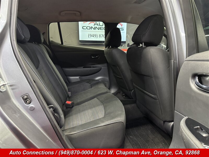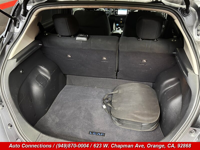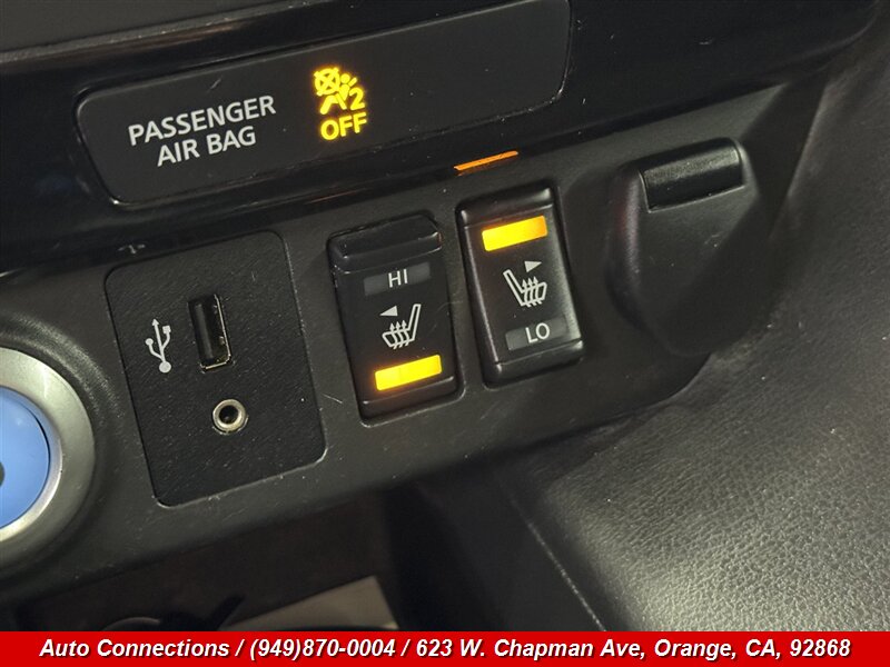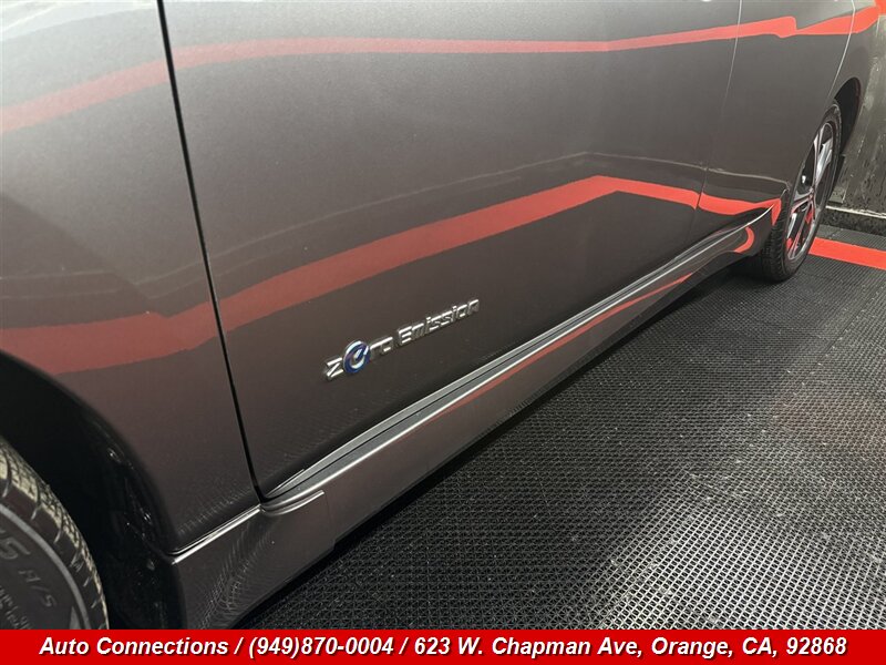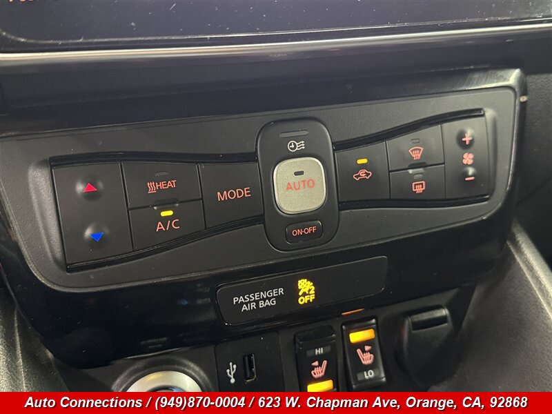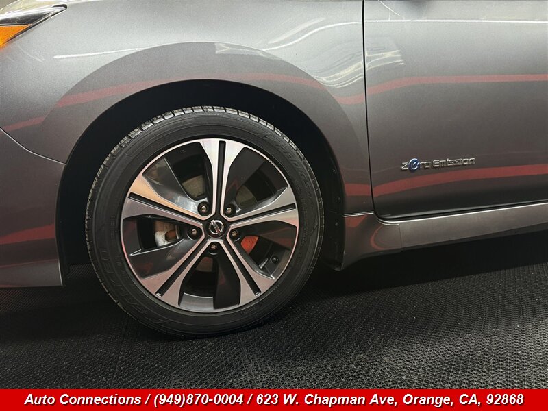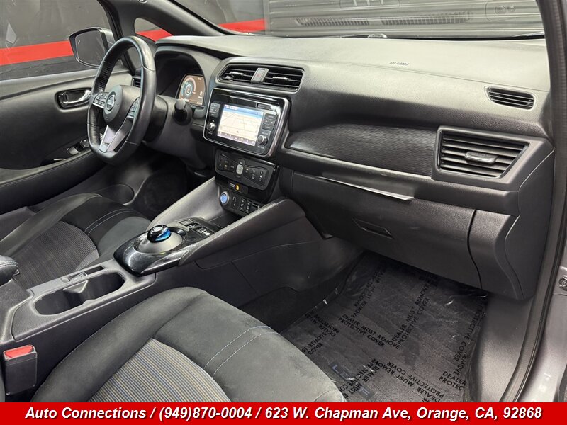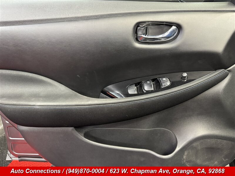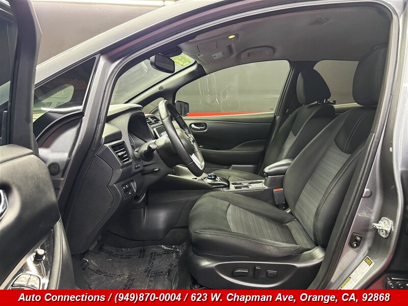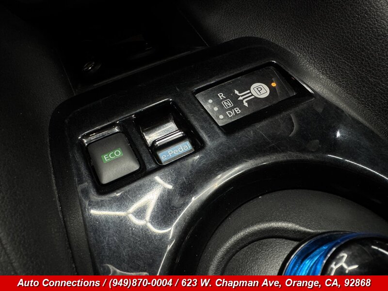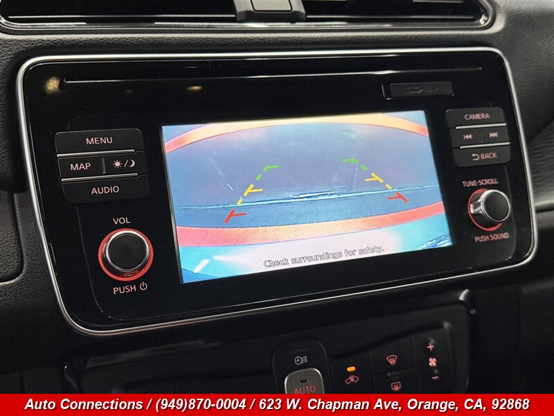 2018 Nissan LEAF SV — Electric 147 hp, 236 ft-lbs. Excellent overall condition with a clean CARFAX and under 50,000 miles (averaging less than 6,000 miles per year). Factory-equipped with a 7-inch touchscreen infotainment system with Bluetooth and USB connectivity, NissanConnect compatibility, push-button start with Intelligent Key, power windows/locks/mirrors, heated front seats, automatic climate control, cruise control, alloy wheels, rearview camera, regenerative braking with selectable drive modes (Eco/B), and Nissan Intelligent Mobility safety features including Automatic Emergency Braking, Blind Spot Warning and Rear Cross Traffic Alert.