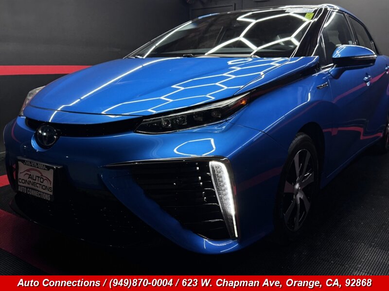 2018 Toyota Mirai — Powered by a hydrogen fuel cell electric powertrain producing 151 hp and 247 lb-ft of torque. Factory-equipped with a single-speed electric drive and regenerative braking, keyless entry with push-button start, dual-zone automatic climate control, touchscreen infotainment with Bluetooth and navigation, rearview camera, LED exterior lighting, alloy wheels, leather-trimmed seating with power driver adjustments and heated front seats. Standard safety systems include Toyota Safety Sense features (pre-collision with pedestrian detection, lane departure alert, adaptive cruise control, automatic high beams), ABS, stability and traction control, multiple airbags and tire pressure monitoring. Excellent overall condition, clean CARFAX, and low mileage under 61,000 miles (averaging less than 7,000 miles per year).