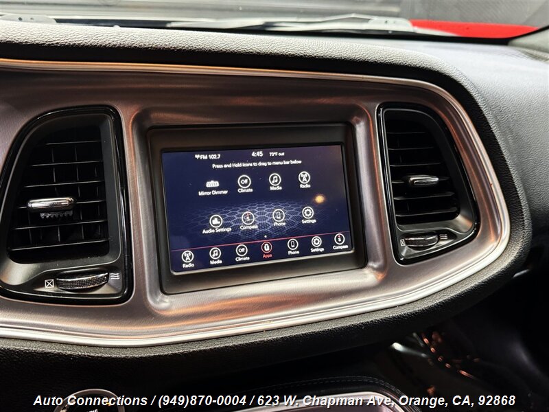 El Dodge Challenger R/T 2019 es un poderoso auto deportivo que ofrece una experiencia de conducción emocionante. Equipado con un robusto motor HEMI V8 de 5.7L, genera una impresionante potencia de 375 caballos y 410 lb-pie de torque. Este Challenger cuenta con una transmisión automática de 8 velocidades, tracción trasera y suspensión deportiva ajustada para un mejor manejo y rendimiento. En su interior, encontrará asientos de tela premium, un sistema de infoentretenimiento con pantalla táctil de 7 pulgadas, compatibilidad con Apple CarPlay y Android Auto, conectividad Bluetooth y un sistema de audio de seis altavoces. Con menos de 70,000 millas y un informe CARFAX limpio, este vehículo está en excelente estado general, promediando menos de 10,000 millas al año, lo que lo convierte en una opción fantástica para los entusiastas de los autos deportivos.