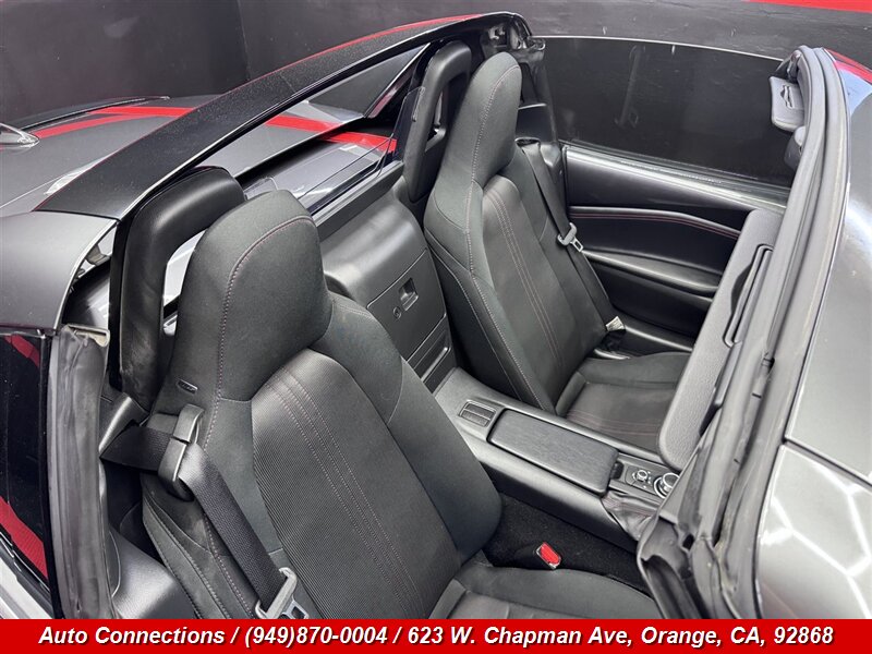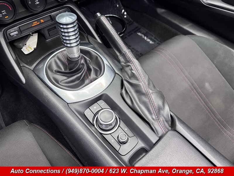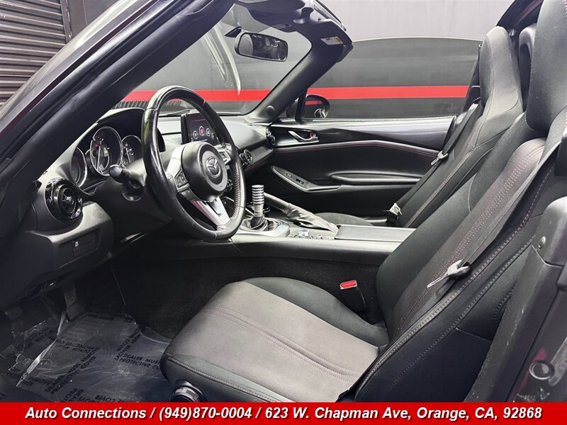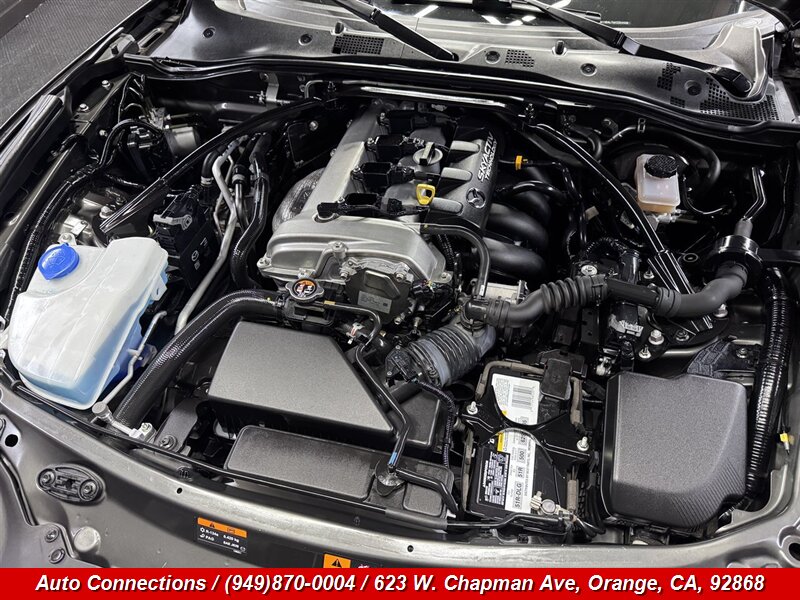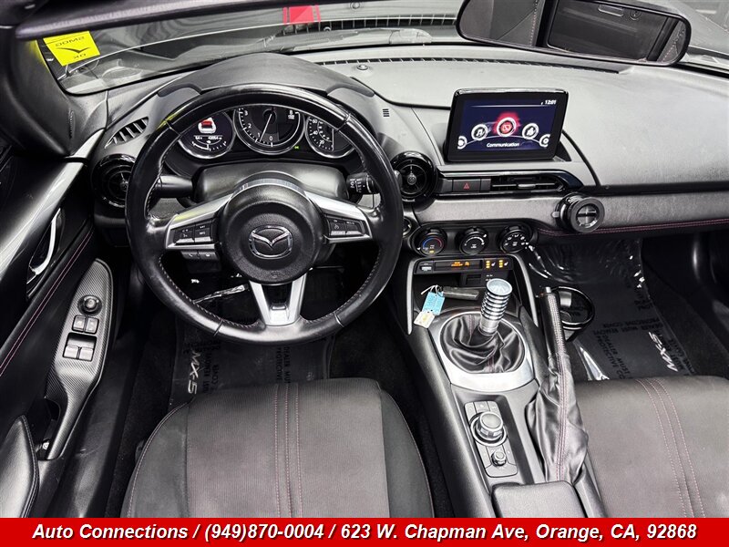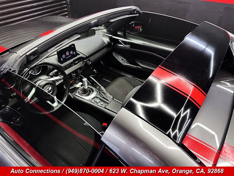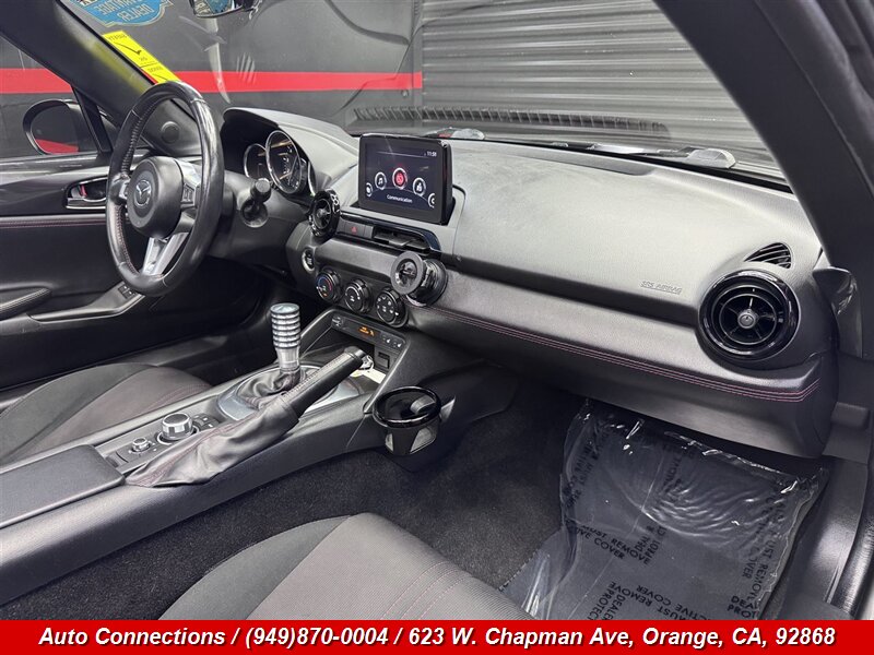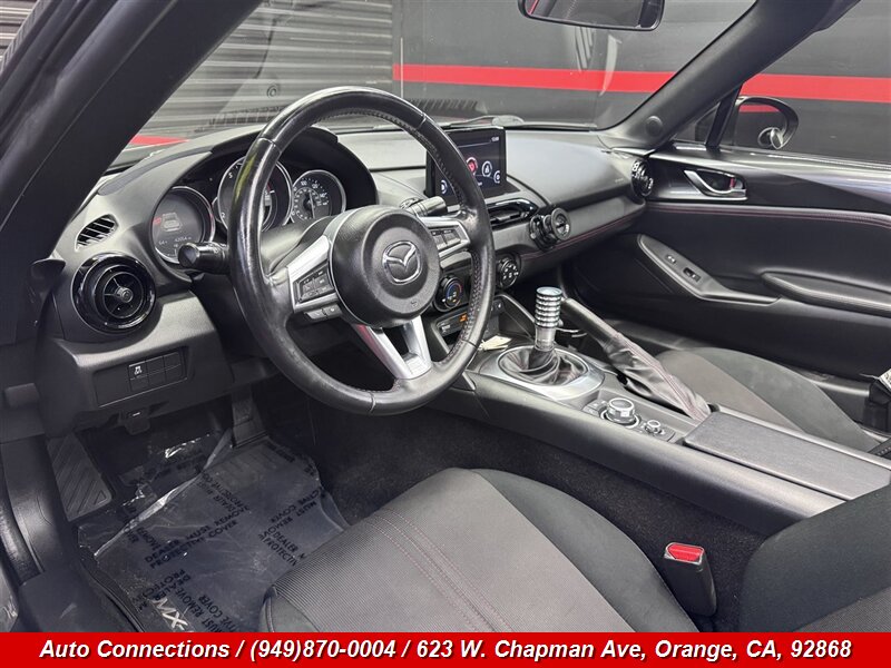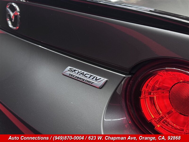 2019 Mazda MX-5 Miata RF Club — Powered by Mazda’s SKYACTIV-G 2.0L I4 engine producing 181 hp and 151 lb-ft of torque. Factory equipment includes the power-retractable fastback hardtop (RF), sport-tuned suspension and Club-trim performance enhancements including a limited-slip rear differential, 17-inch alloy wheels, and responsive steering. Comfort and convenience features from the factory include supportive sport seats with quality trim, Mazda Connect infotainment with a 7-inch display, Bluetooth and USB connectivity, a rearview camera, keyless access with push-button start, and available 6-speed manual or automatic transmission. Standard safety and driver-assist systems include ABS, traction and stability control, and multiple airbags. This vehicle has excellent overall condition, under 43,000 miles (averaging less than 6,000 miles per year), and a clean CARFAX report.