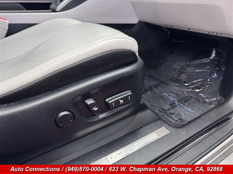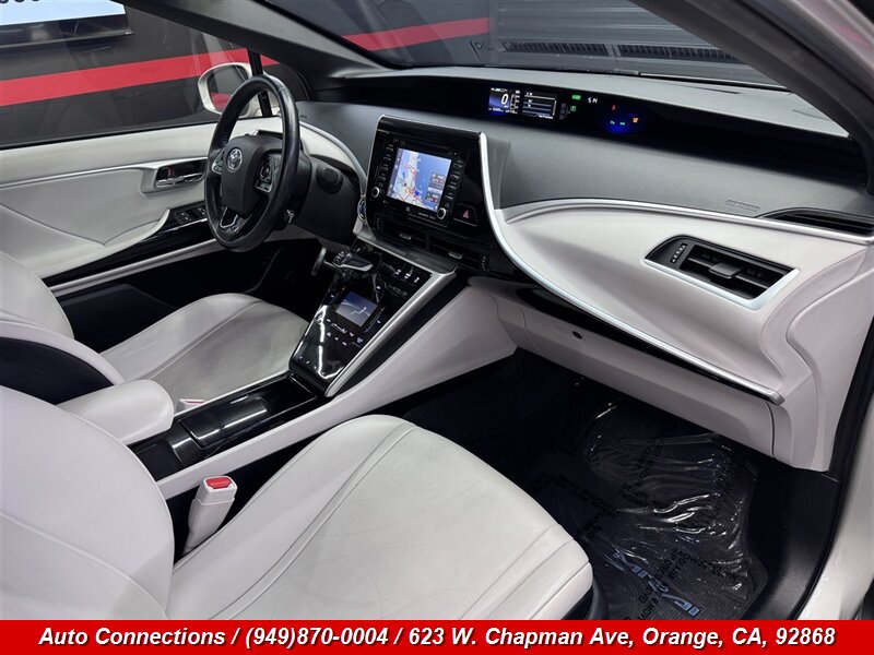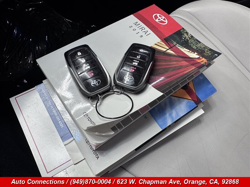 2019 Toyota Mirai — Este sedán con pila de combustible de hidrógeno entrega 151 hp y 247 lb-ft de torque. VehÃculo en excelente estado general con menos de 63,000 millas (promedia menos de 8,000 millas por año) y con informe CARFAX limpio. Equipamiento de fábrica incluye la unidad de potencia de pila de combustible, Toyota Safety Sense P (Sistema Pre-Colisión con Detección de Peatones, Control de Crucero Dinámico por Radar, Alerta de Cambio de Carril con Asistencia de Dirección, Luces Altas Automáticas), Monitor de Punto Ciego con Alerta de Tráfico Cruzado Trasero, faros LED, entrada sin llave con encendido por botón, control climático automático de dos zonas, asientos delanteros calefactables y asiento del conductor con ajuste eléctrico, sistema de audio con pantalla táctil, Bluetooth y cámara de reversa, llantas de aleación y accesorios eléctricos completos.