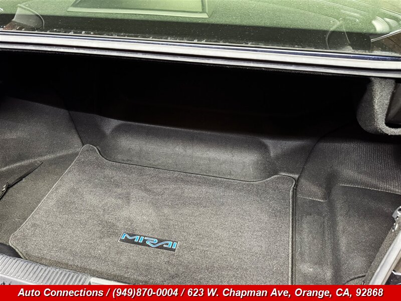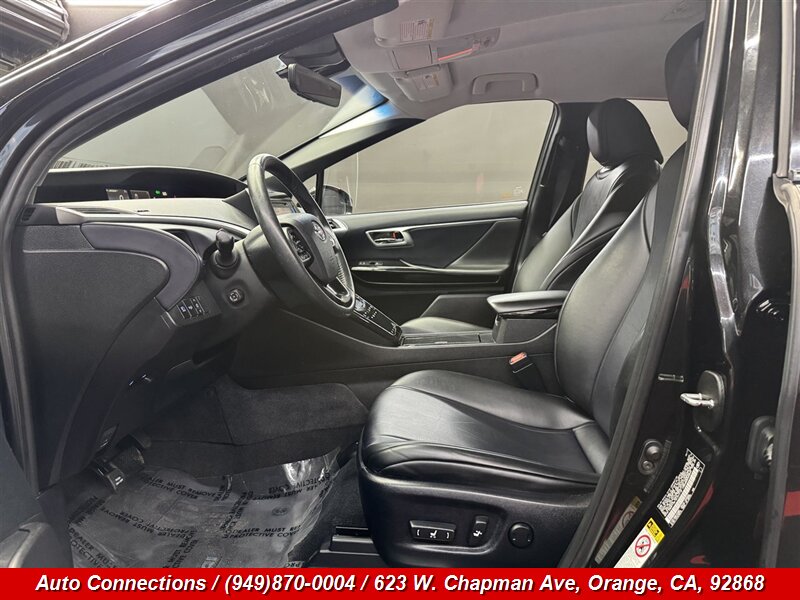 2019 Toyota Mirai powered by a Hydrogen Fuel Cell producing 151 hp and 247 ft-lbs of torque. Factory-standard features include the Toyota Safety Sense suite (Pre-Collision System with Pedestrian Detection, Dynamic Radar Cruise Control, Lane Departure Alert with Steering Assist, Automatic High Beams), LED headlights and taillights, leather-trimmed heated front seats with power adjustment, dual-zone automatic climate control, Smart Key with push-button start and remote keyless entry, 8-inch touchscreen infotainment with Bluetooth and available navigation, backup camera, blind-spot monitor with rear cross-traffic alert, regenerative braking and a single-speed electric drive. This vehicle has under 66,000 miles (averaging less than 9,000 miles per year), is in excellent overall condition, and comes with a clean CARFAX report.