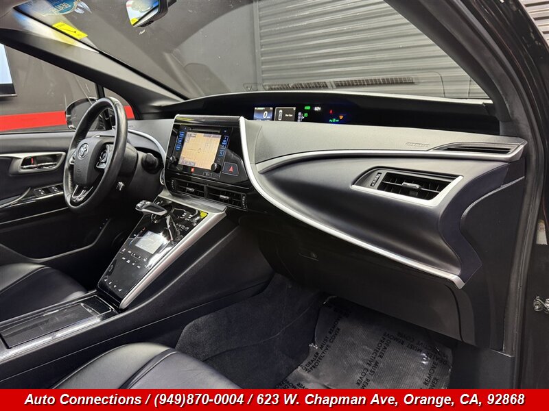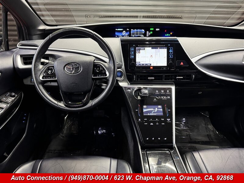 2019 Toyota Mirai impulsado por una pila de combustible de hidrógeno que entrega 151 hp y 247 ft-lbs de par. Las características de fábrica incluyen el paquete Toyota Safety Sense (Sistema de Pre-Colisión con detección de peatones, Control de Crucero Dinámico por Radar, Alerta de Cambio de Carril con Asistencia de Dirección, Luces Altas Automáticas), faros y luces traseras LED, asientos delanteros calefactados con tapicería de cuero y ajuste eléctrico, climatizador automático de doble zona, llave inteligente con arranque por botón y entrada remota sin llave, sistema de infoentretenimiento con pantalla táctil de 8 pulgadas, Bluetooth y navegación disponible, cámara de reversa, monitor de punto ciego con alerta de tráfico cruzado trasero, frenado regenerativo y transmisión eléctrica de una sola velocidad. Este vehículo tiene menos de 66,000 millas (promedio inferior a 9,000 millas/año), se encuentra en excelente estado general y cuenta con un informe CARFAX limpio.