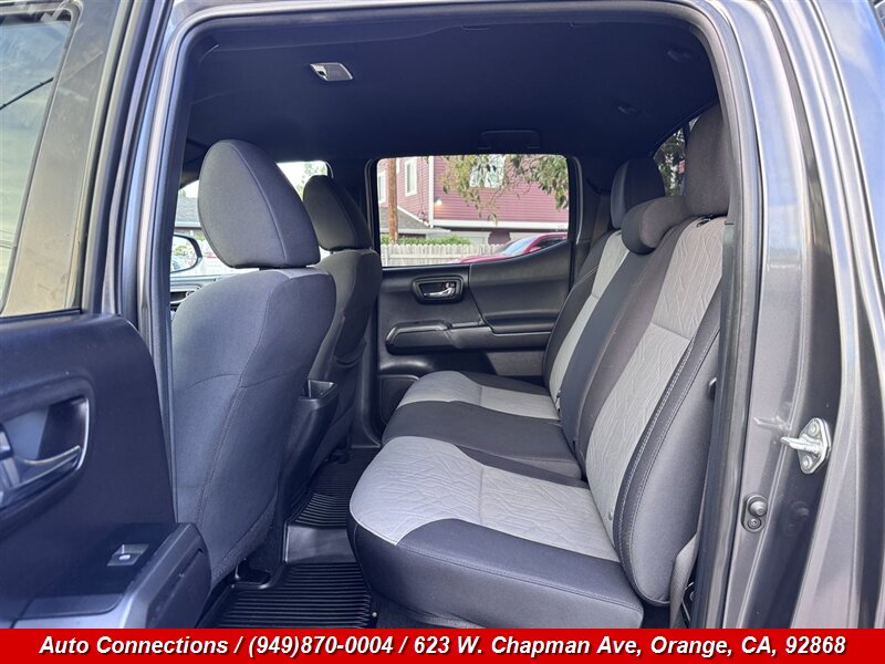 Toyota Tacoma TRD Sport 2020 con motor V6 3.5L que entrega 278 hp y 265 lb-ft de torque. Equipamiento de fábrica incluye el acabado TRD Sport (toma de aire en el capó y detalles deportivos), suspensión deportiva, rines de aleación, luces antiniebla y una caja de carga resistente. El interior y las comodidades incluyen asientos deportivos de tela, vidrios y seguros eléctricos, entrada remota sin llave, controles de audio en el volante, conectividad Bluetooth y USB, pantalla de información múltiple y control automático de clima. Seguridad y control con cámara de reversa, ABS, control de estabilidad y tracción, múltiples bolsas de aire y las tecnologías de asistencia al conductor de fábrica de Toyota. Excelente estado general, CARFAX limpio y bajo kilometraje por debajo de 67,000 millas (promedio menos de 10,000 millas por año).